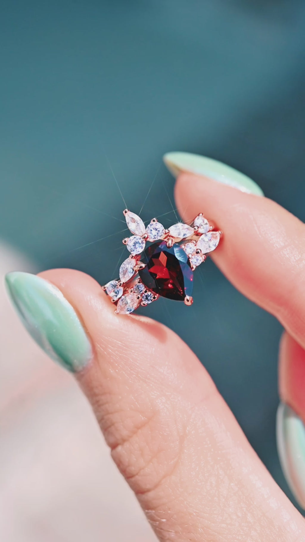 Evelyn Garnet Ring Set- 14K Rose Gold Vermeil