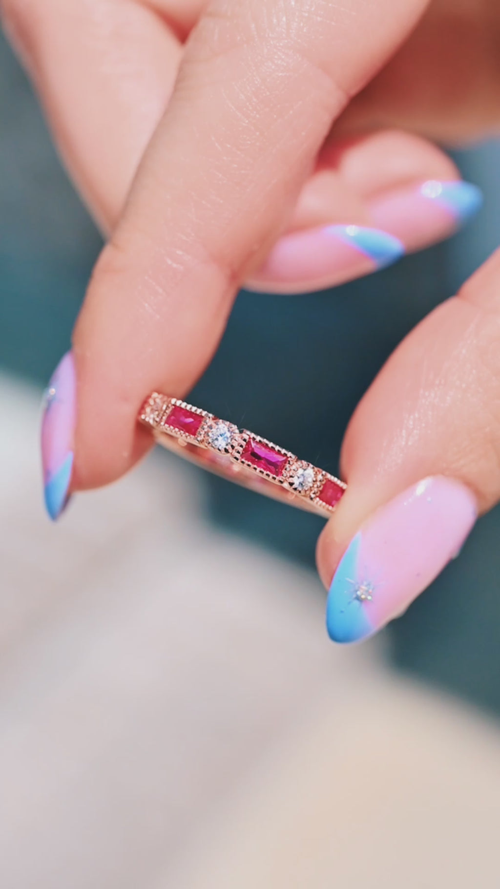 ► Gemstone type: Genuine lab-grown ruby & simulated diamonds (CZ)