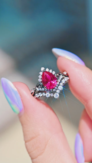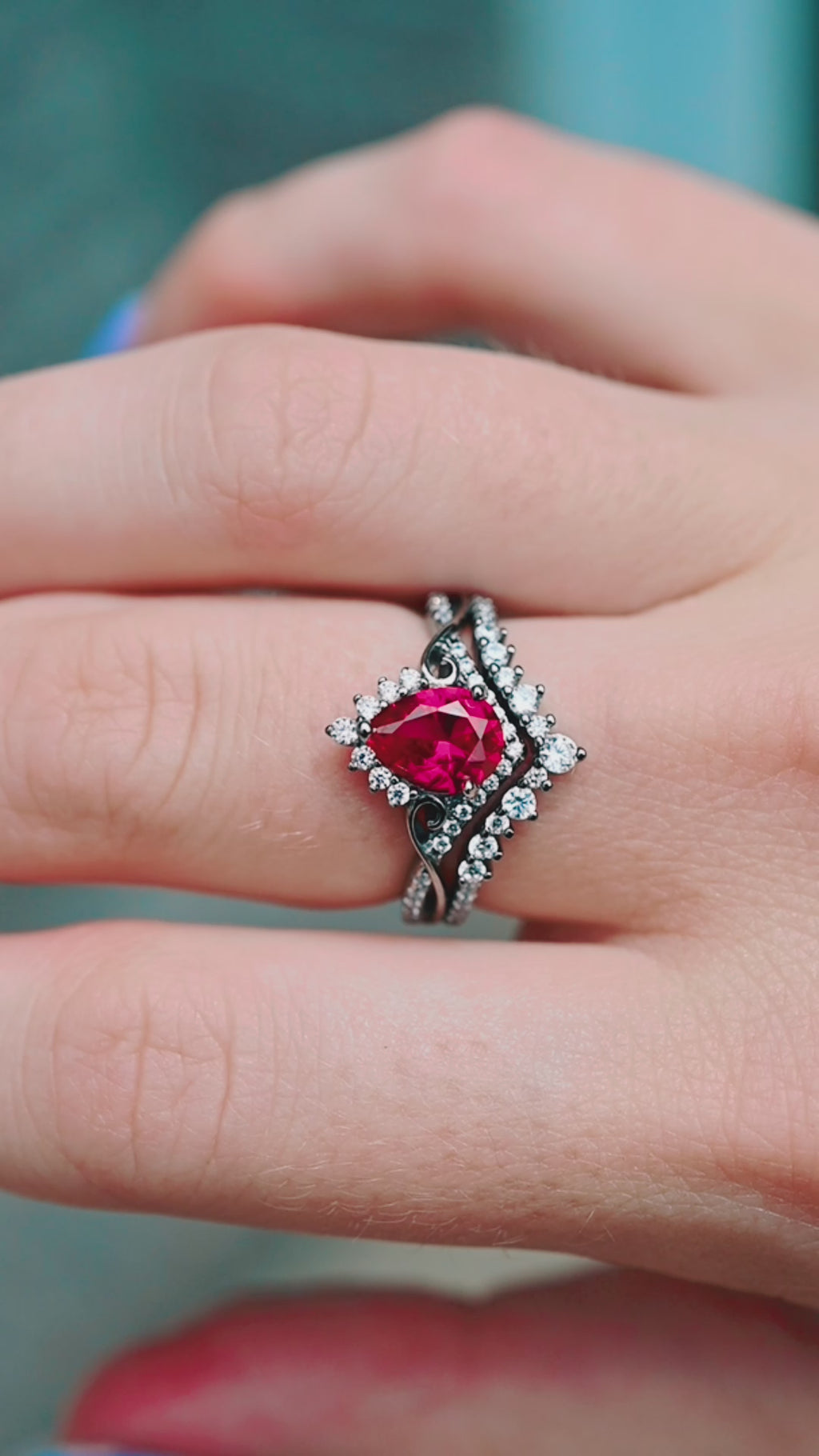 Faye Ruby Engagement Ring Set in Black Ruthenium
