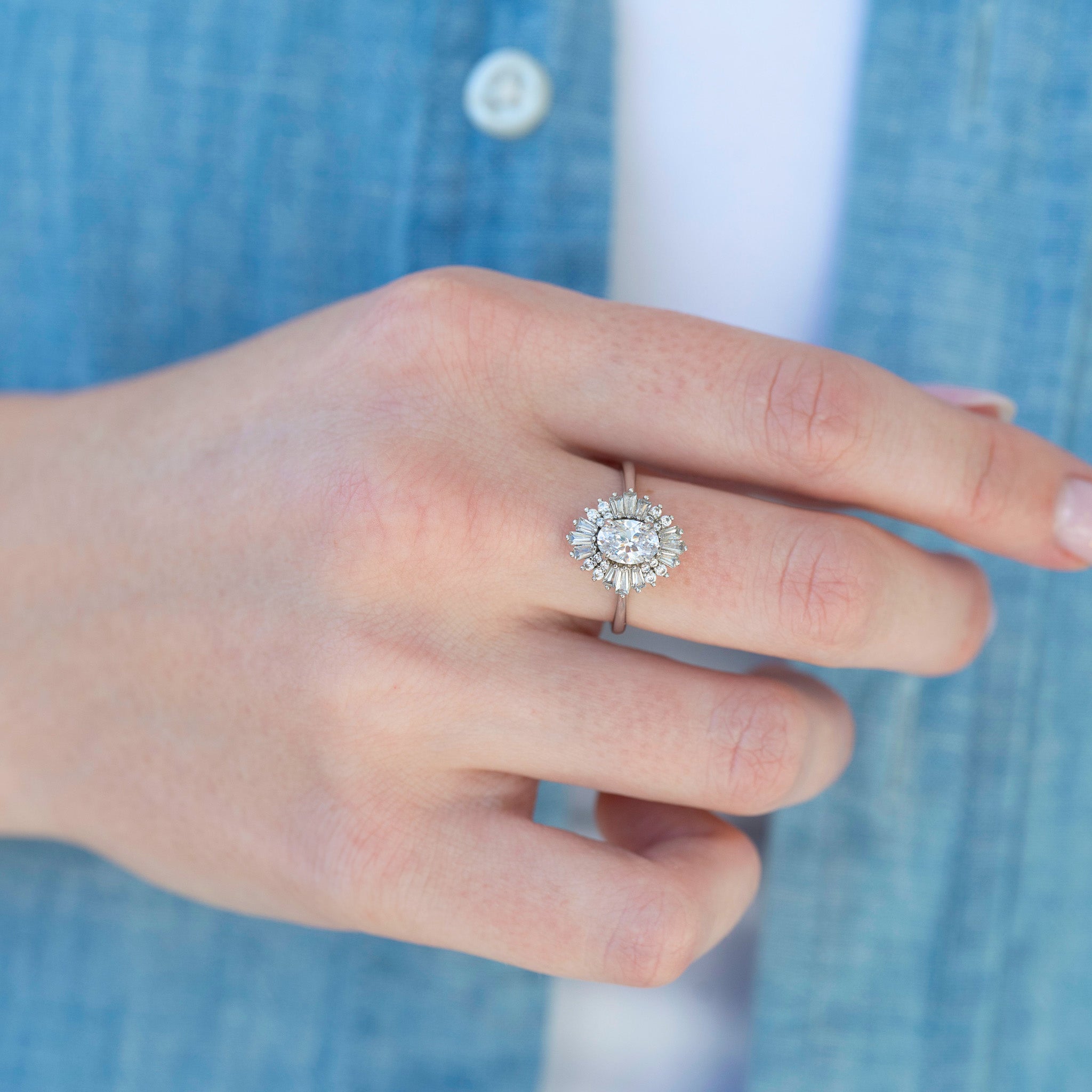 The Victoria Diamond Ring in 14K Solid White Gold is a breathtaking vintage-inspired piece, designed to capture timeless elegance and refined sophistication. Featuring a radiant oval-cut lab-grown diamond as its centerpiece, surrounded by sparkling lab-grown diamond accents, this heirloom-worthy ring offers a sustainable and ethical alternative to mined diamonds. Set in sleek 14K white gold, the delicate vintage detailing enhances the brilliance of each stone, making it an exquisite choice for an engagement, anniversary, or meaningful gift.