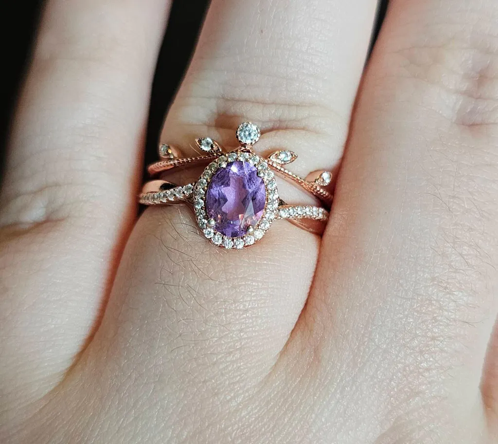 Amethyst & Galaxy Fire Opal Couples Ring Set