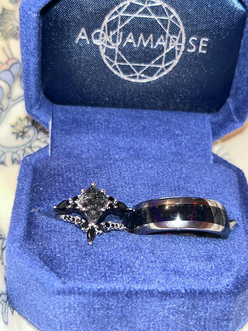 The packaging was lovely. The rings are beautifully made. I’m a sterling silver girly. Me and my man were looking for something beautiful. I’m not the type to want a 6k ring. I want something beautiful like this. Never been a diamond fan. I like elegant but beautiful. Rutilated quartz for the win.