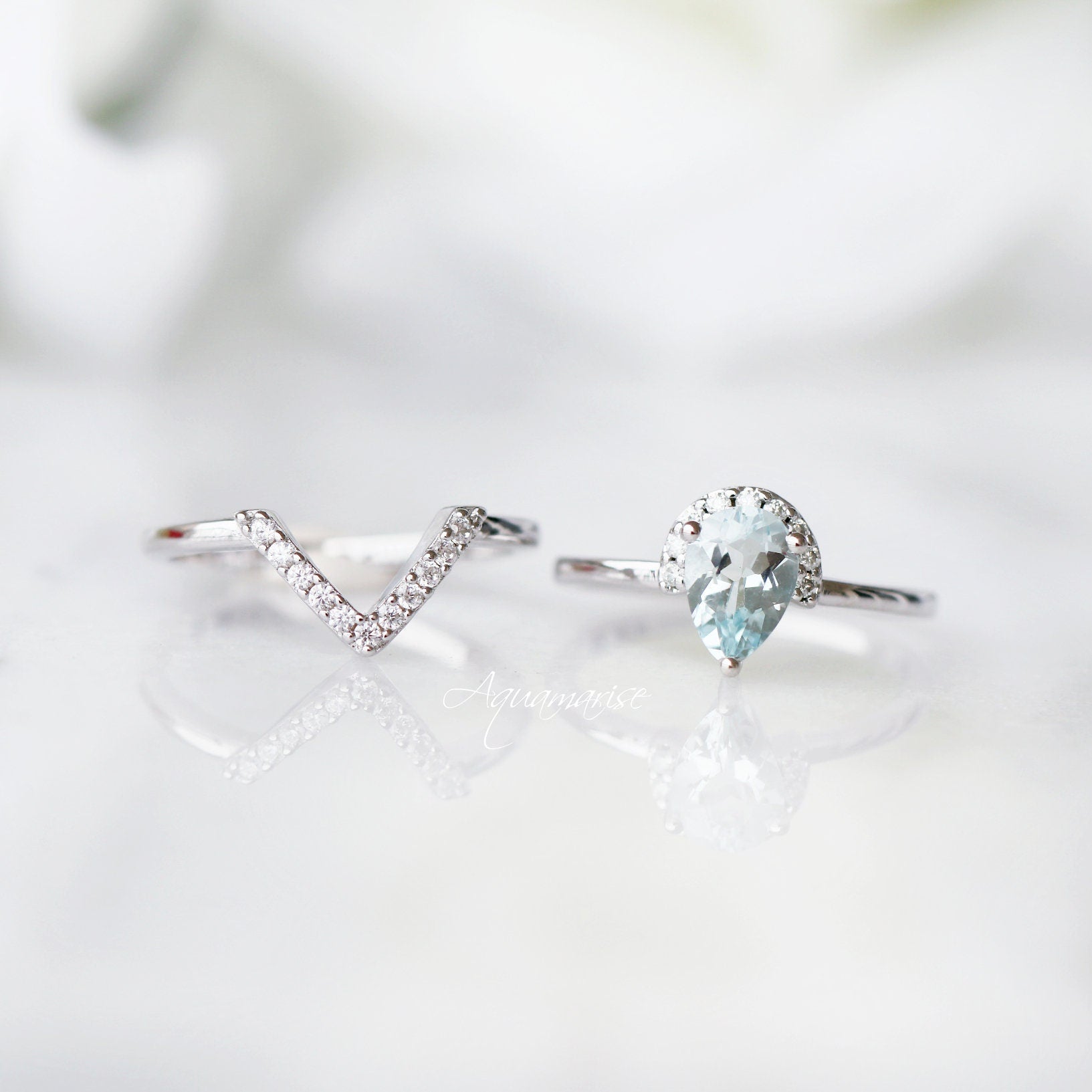 Aria Aquamarine Ring Set- Sterling Silver