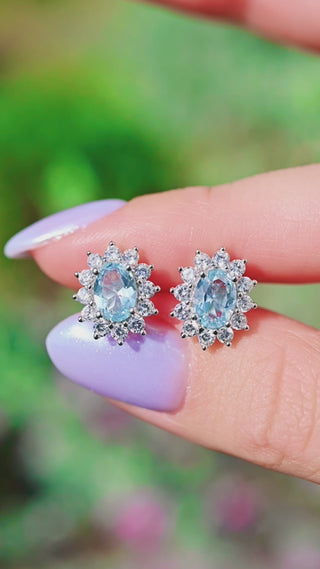 Diana Halo Oval Aquamarine Stud Earrings in Sterling Silver