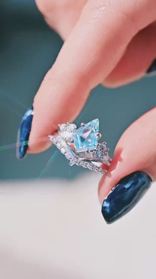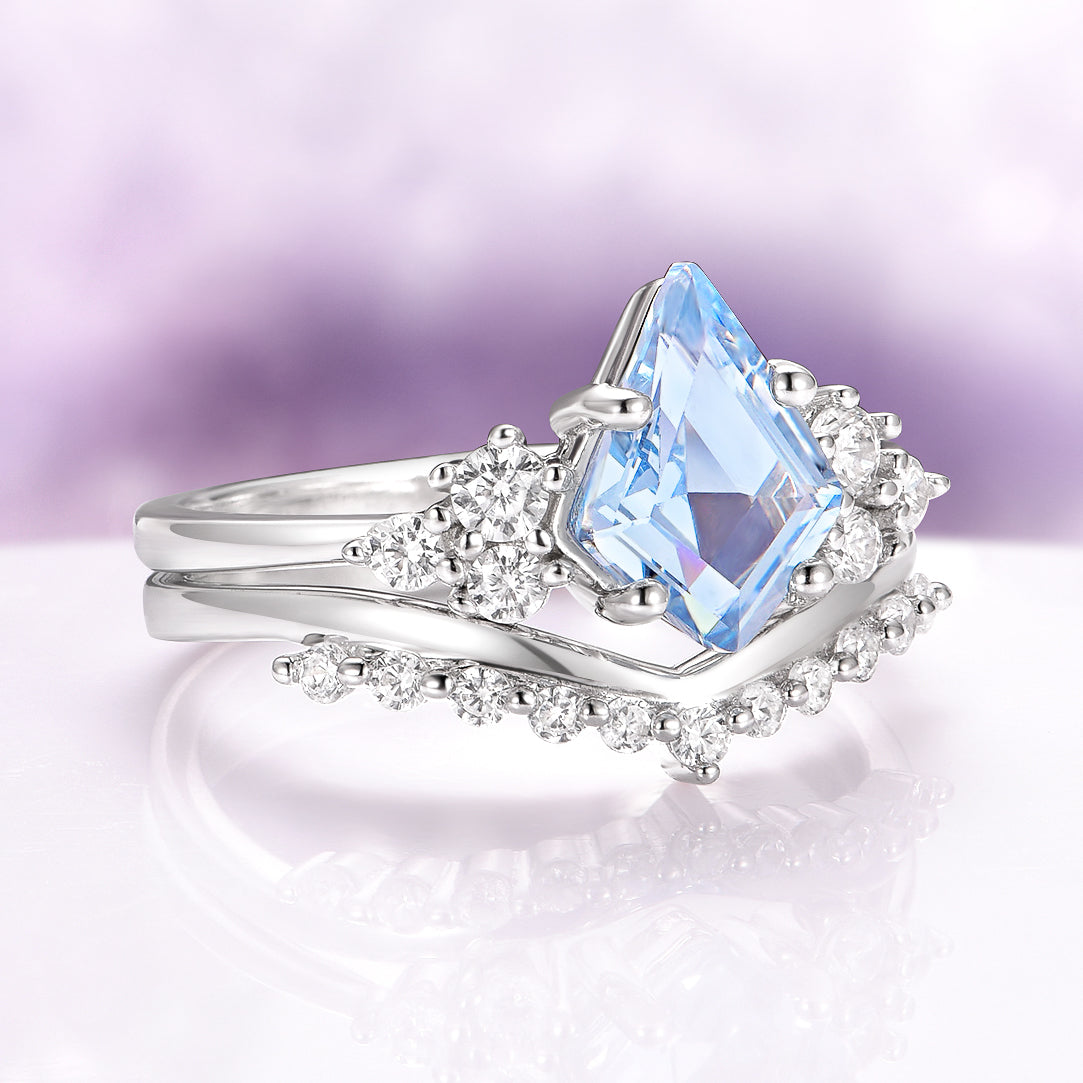 Skylar Kite Cut Aquamarine Engagement Ring Set in Sterling Silver