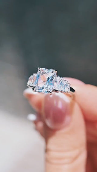 Classic and elegant, this White Sapphire Ring captures timeless sophistication. Featuring a radiant emerald-cut lab-grown white sapphire set in solid 925 sterling silver, this ring shimmers with pure brilliance and understated luxury. Perfect as an engagement ring, promise ring, or anniversary gift, it embodies the beauty of everlasting love in its most refined form.