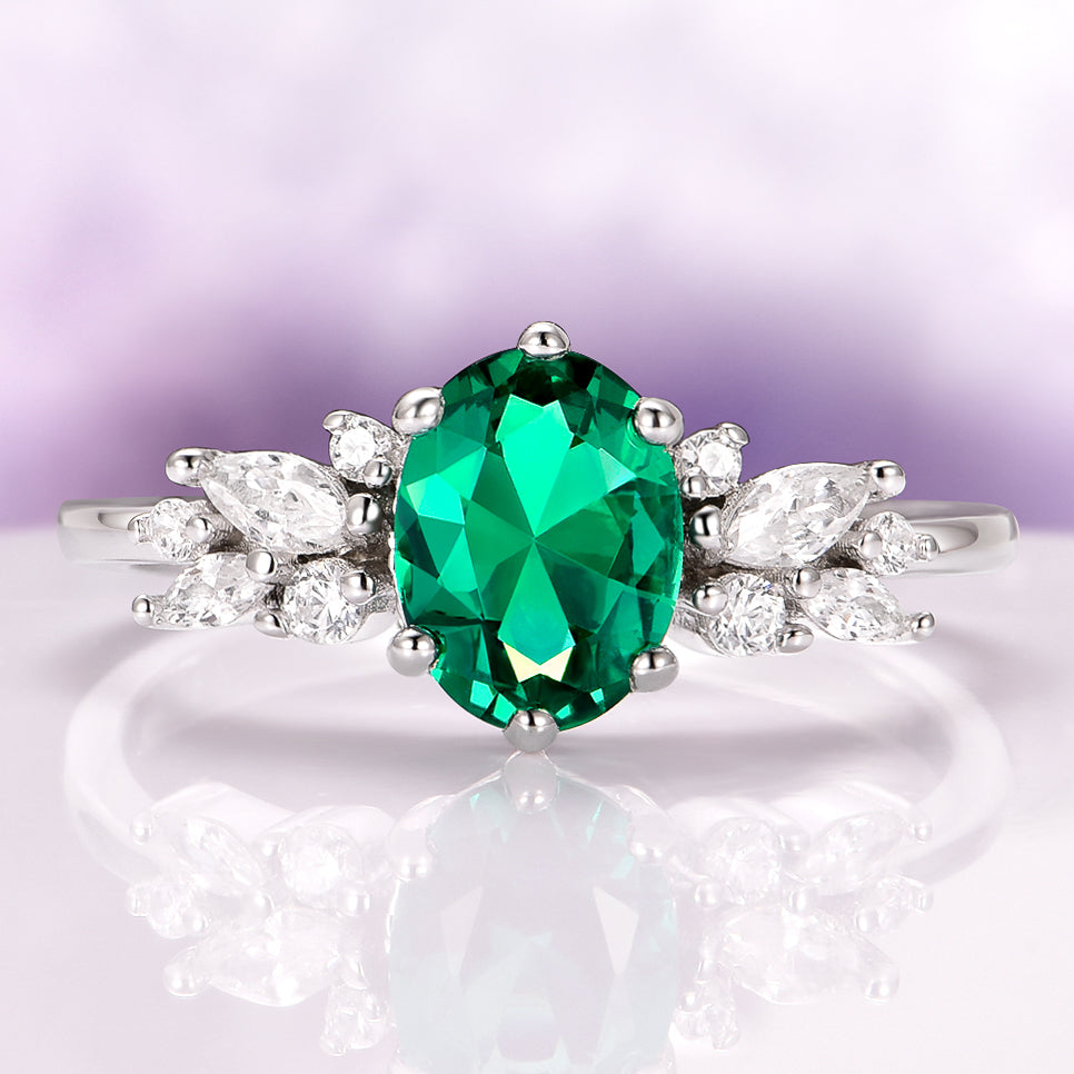 ►Her ring, a masterpiece of elegance, boasts a radiant emerald green hue that captures the essence of everlasting love. Carefully crafted from 925 sterling silver, the band is enhanced with a rhodium finish, adding a touch of brilliance and ensuring long-lasting beauty. The intricate floral design adorning the band adds a delicate and romantic charm, symbolizing the blossoming love between two souls.