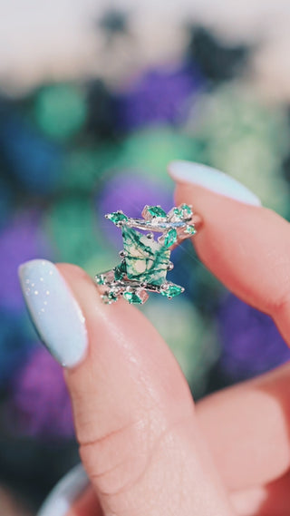 Kite Moss Agate & Emerald Fairy Engagement Ring in Sterling Silver