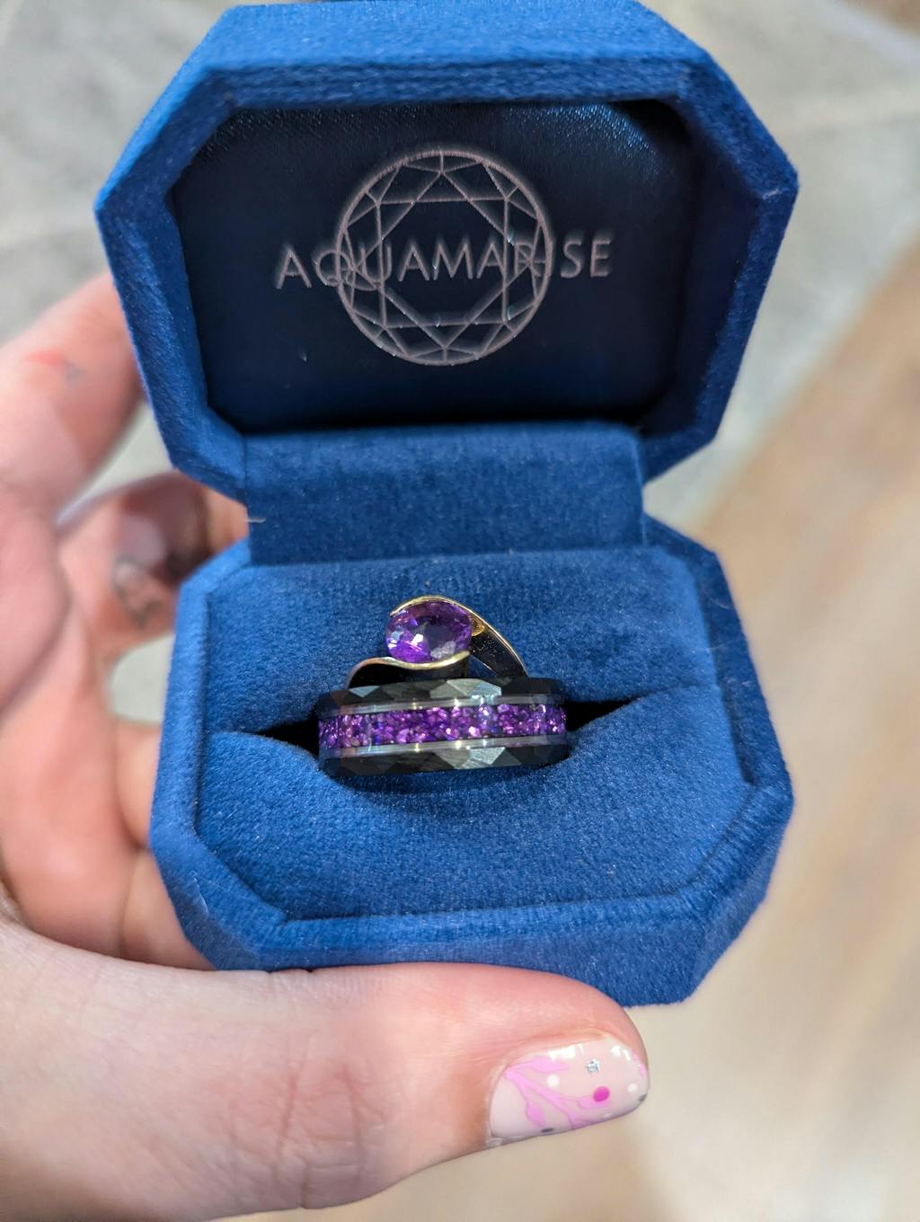 ►Crushed amethyst inlay, perfect for February birthdays