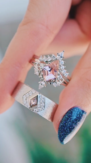 Morganite & Lab Diamond Wedding Band in 14K White Gold (8mm)