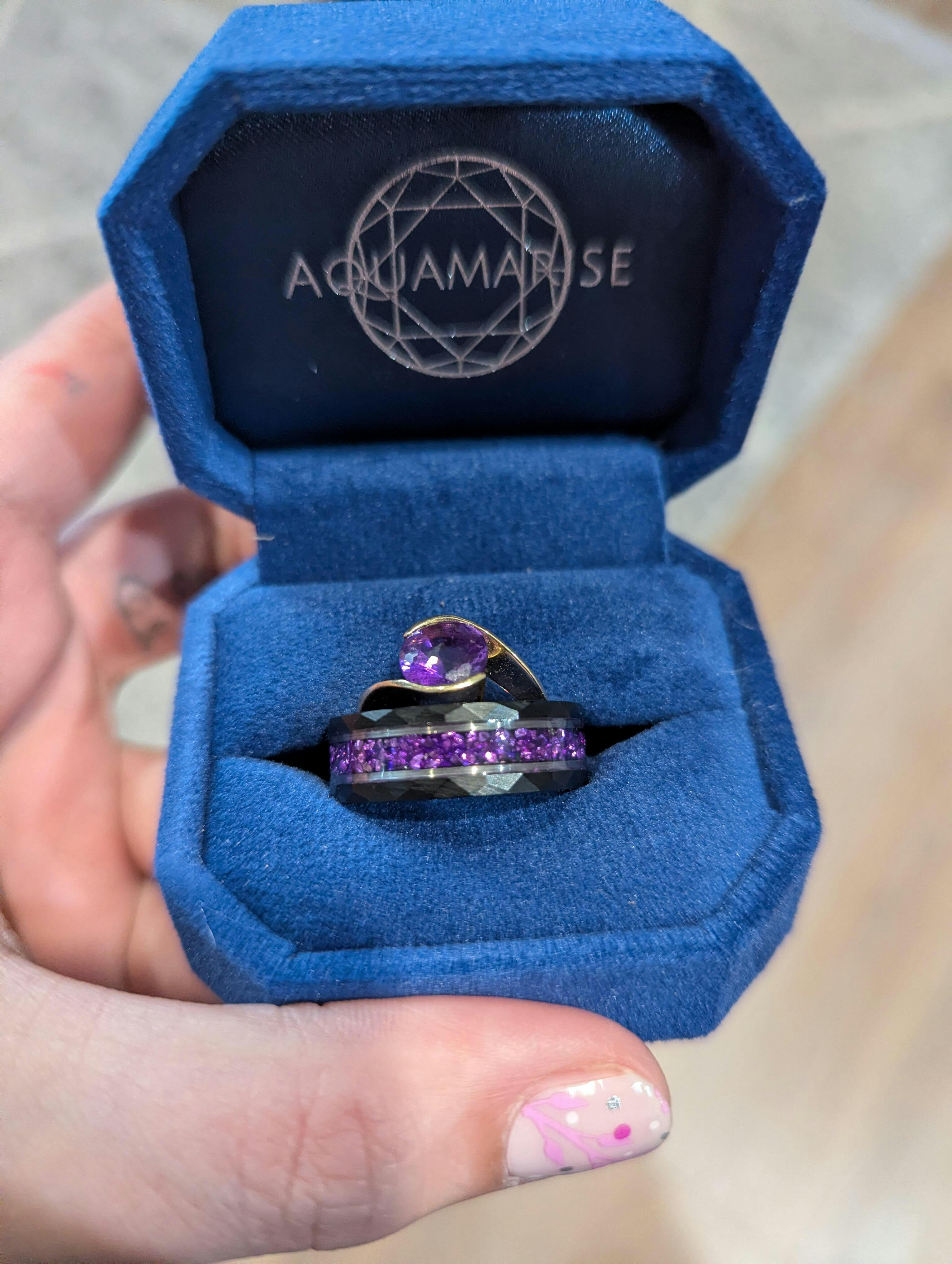 ►Perfect for the man who appreciates both craftsmanship and comfort, this ring is designed with a comfort fit, ensuring it feels as good as it looks. Whether you’re marking a special occasion or simply want a ring that stands out, this purple gemstone band is a statement of enduring love and individuality.