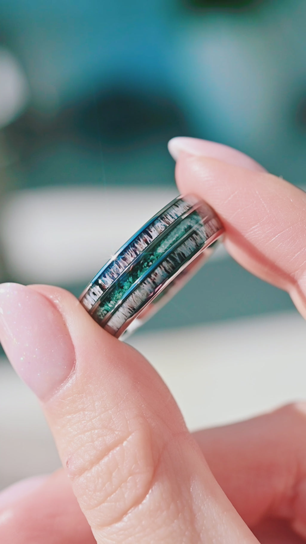 Elk Antler & Moss Agate Tungsten Carbide Wedding Band (8mm)