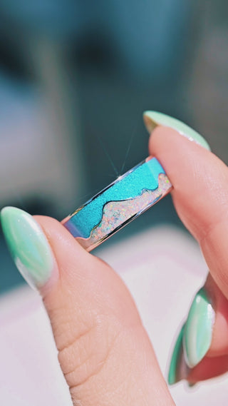 Turquoise & Fire Opal Mountain Wedding Band in Titanium (8mm)