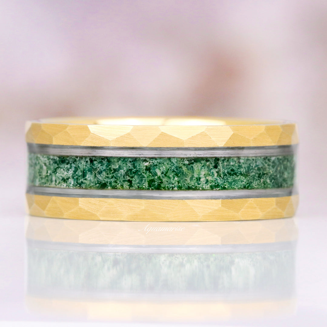 Green Moss Agate Wedding Band in Two Tone Black Tungsten Carbide (8mm)