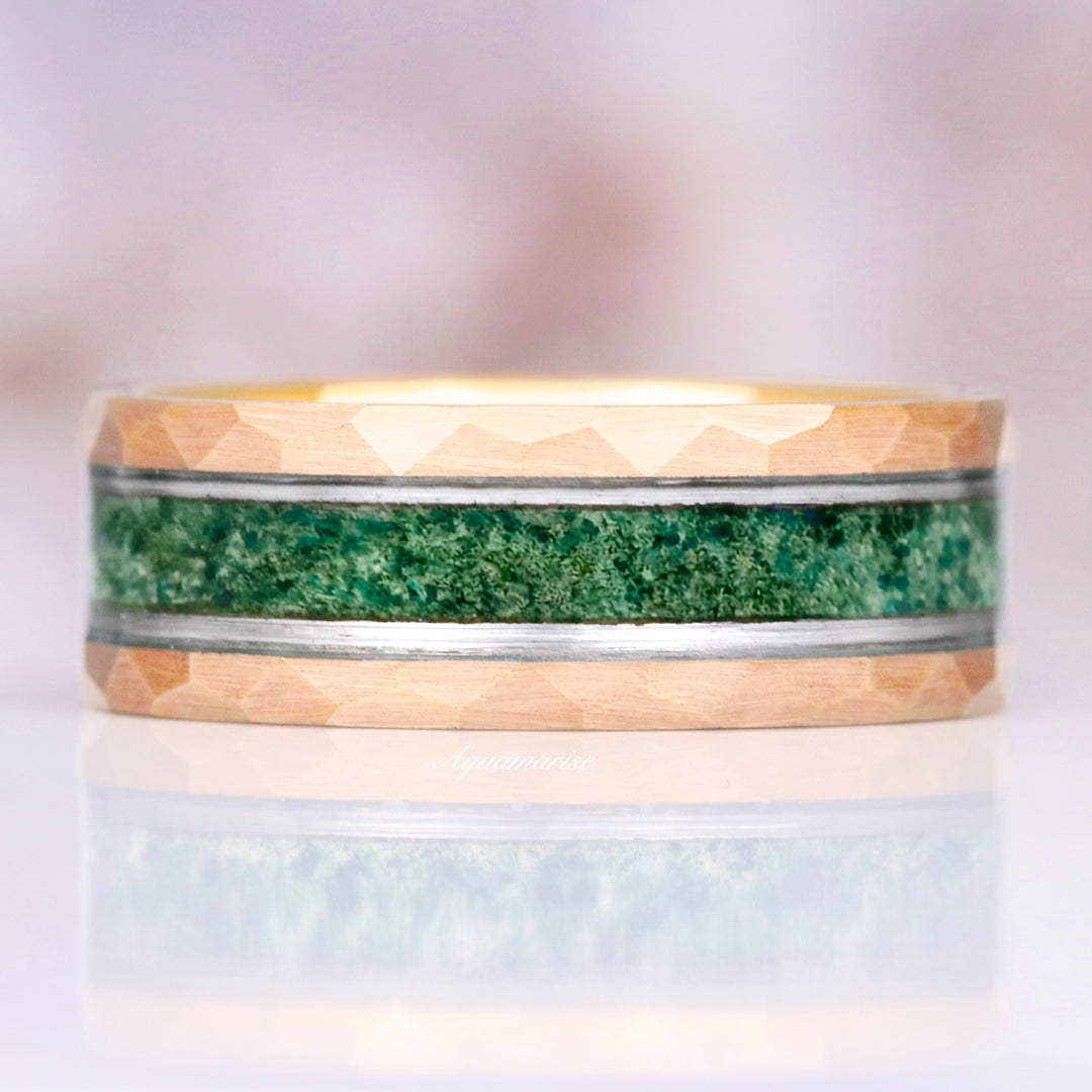 Moss Agate Wedding Band- 8MM Tungsten