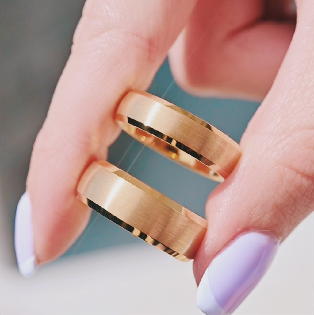 ►Material: Premium tungsten carbide with 14K yellow gold plating