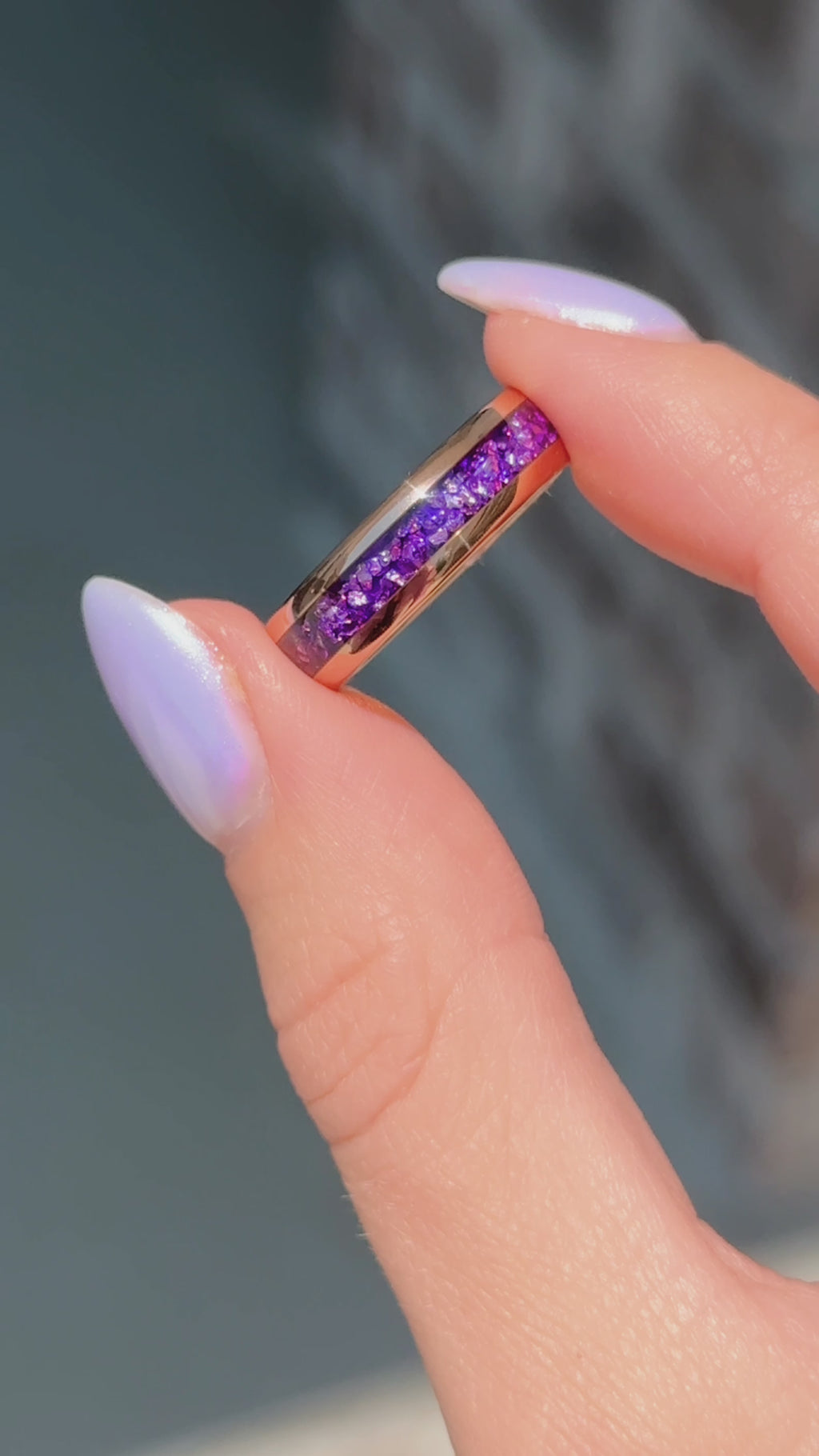Crushed Amethyst Wedding Band- 6MM Rose Gold Tungsten