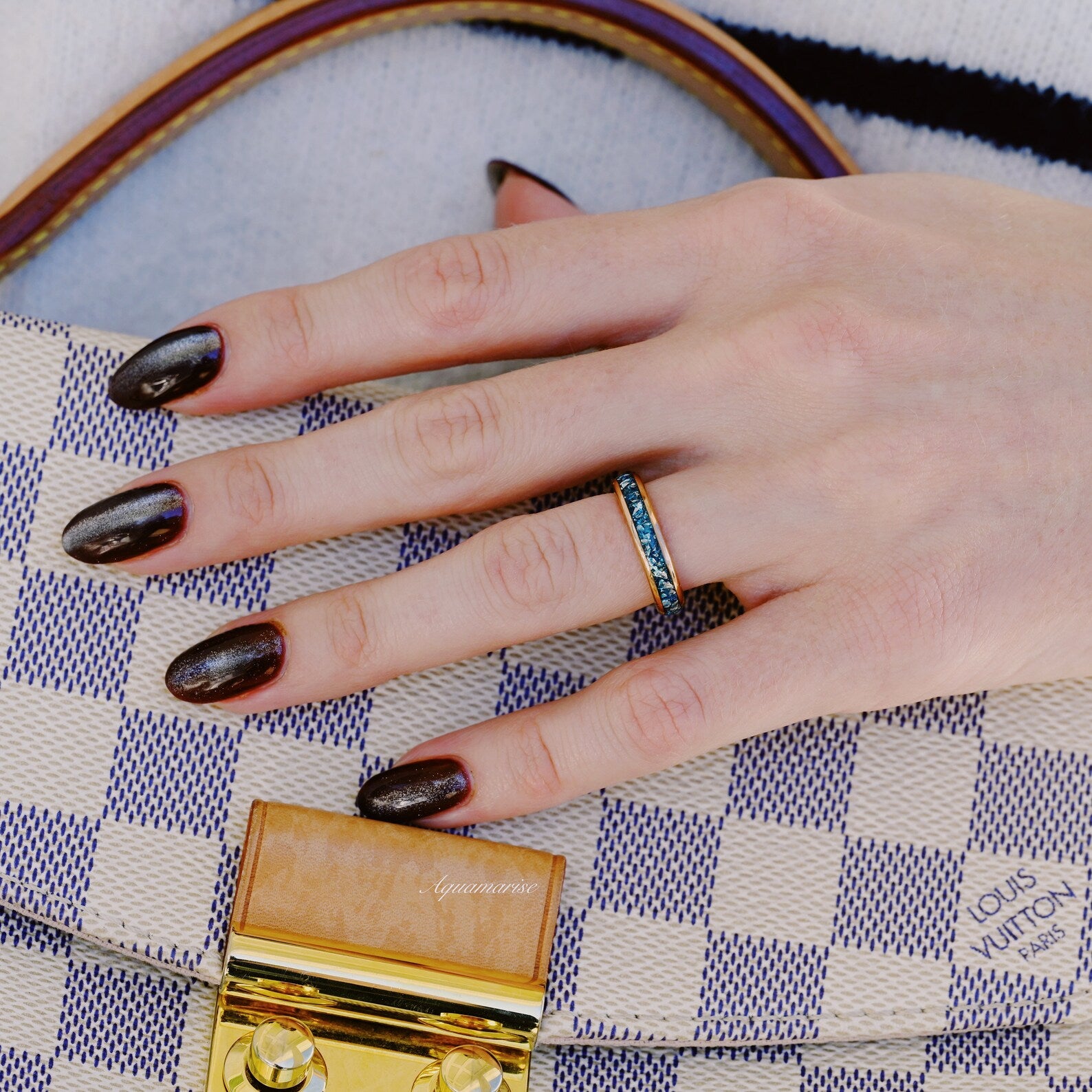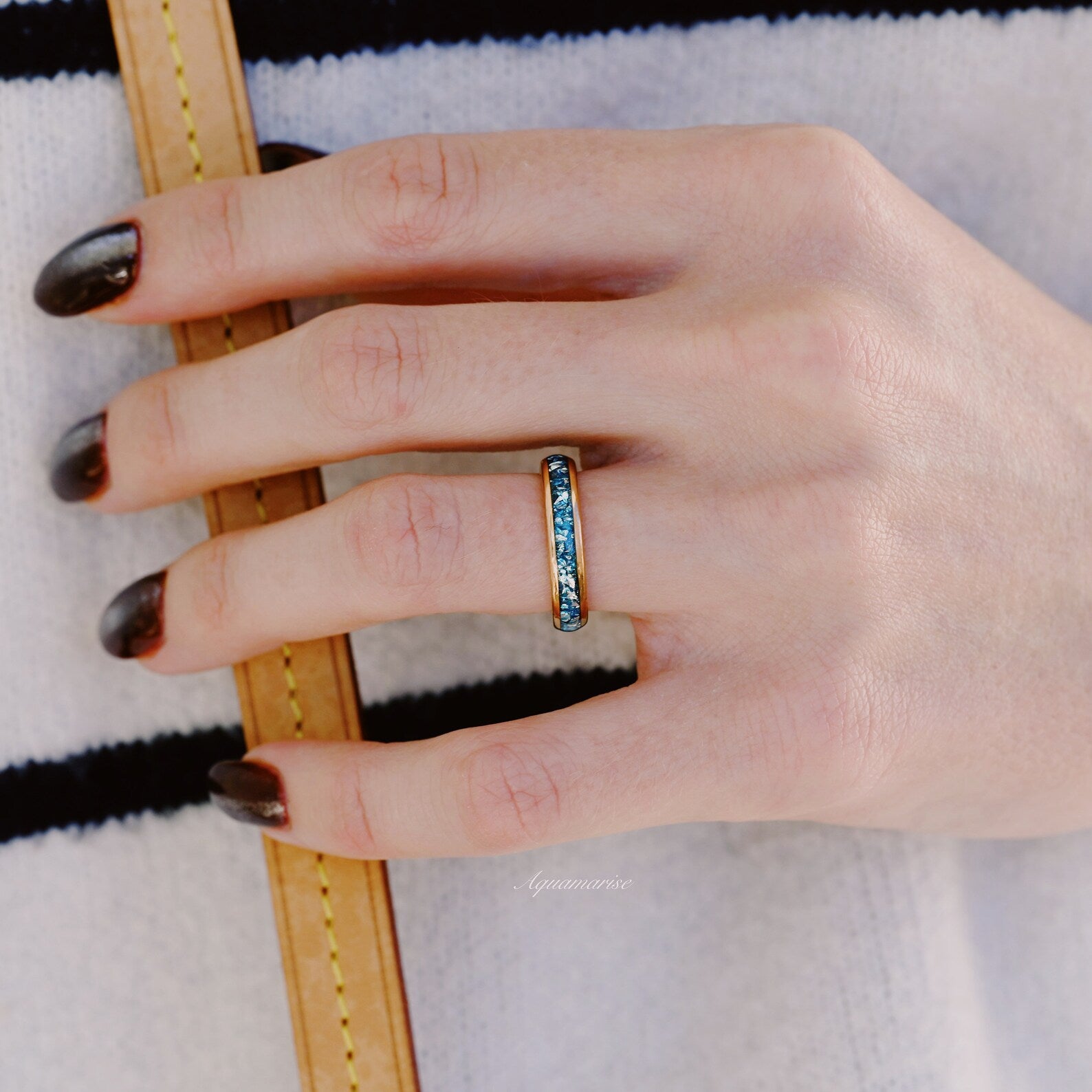 Crushed Aquamarine Wedding Band- 4MM Rose Gold Tungsten