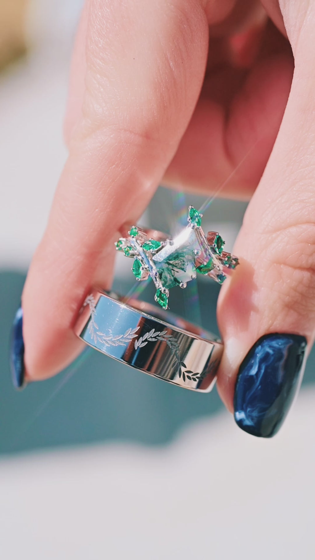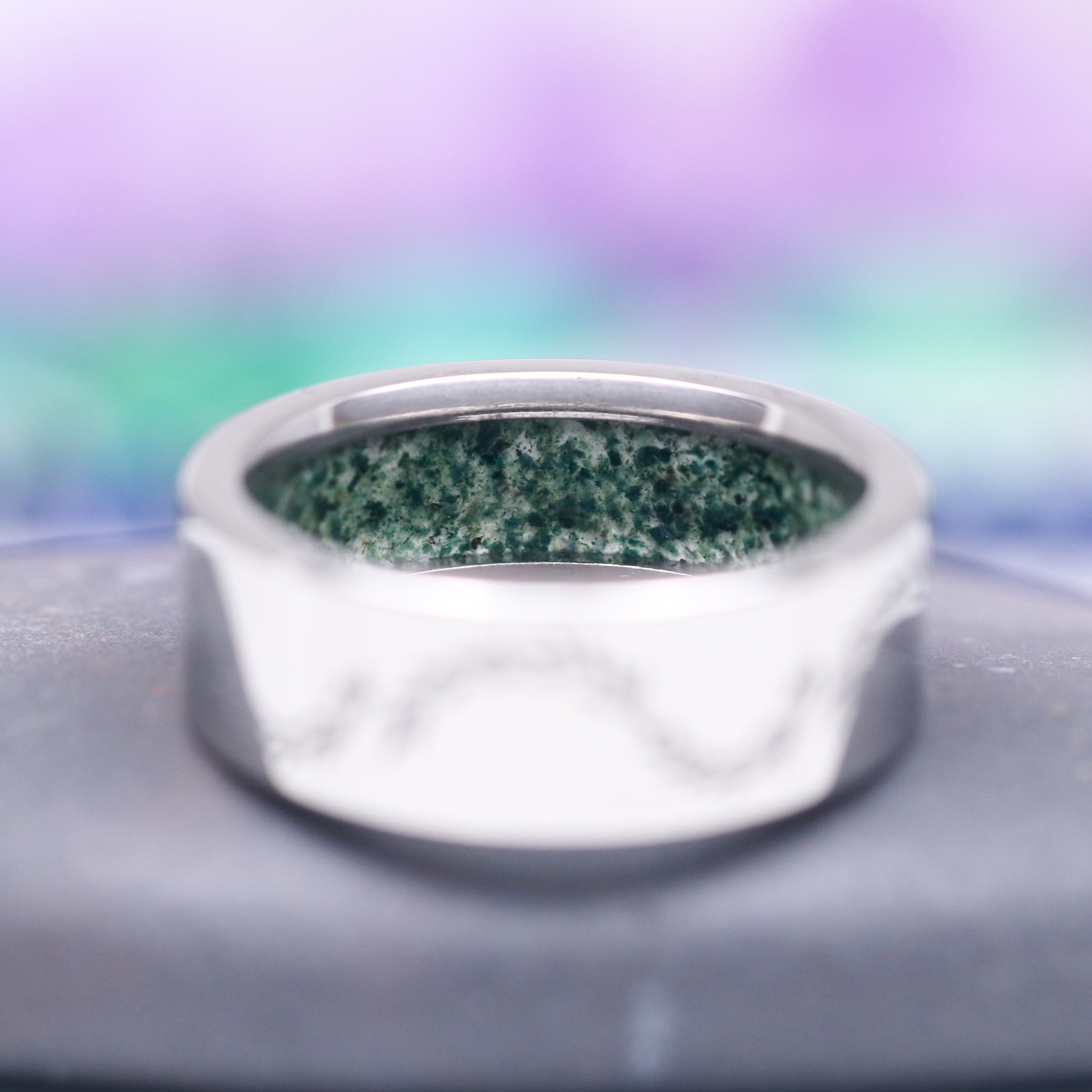 Crushed Moss Agate Leaf Wedding Band- 8MM Titanium