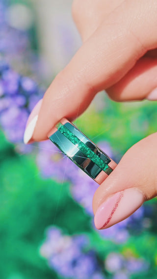 Natural Crushed Malachite Inlay Wedding Band- 8MM Tungsten