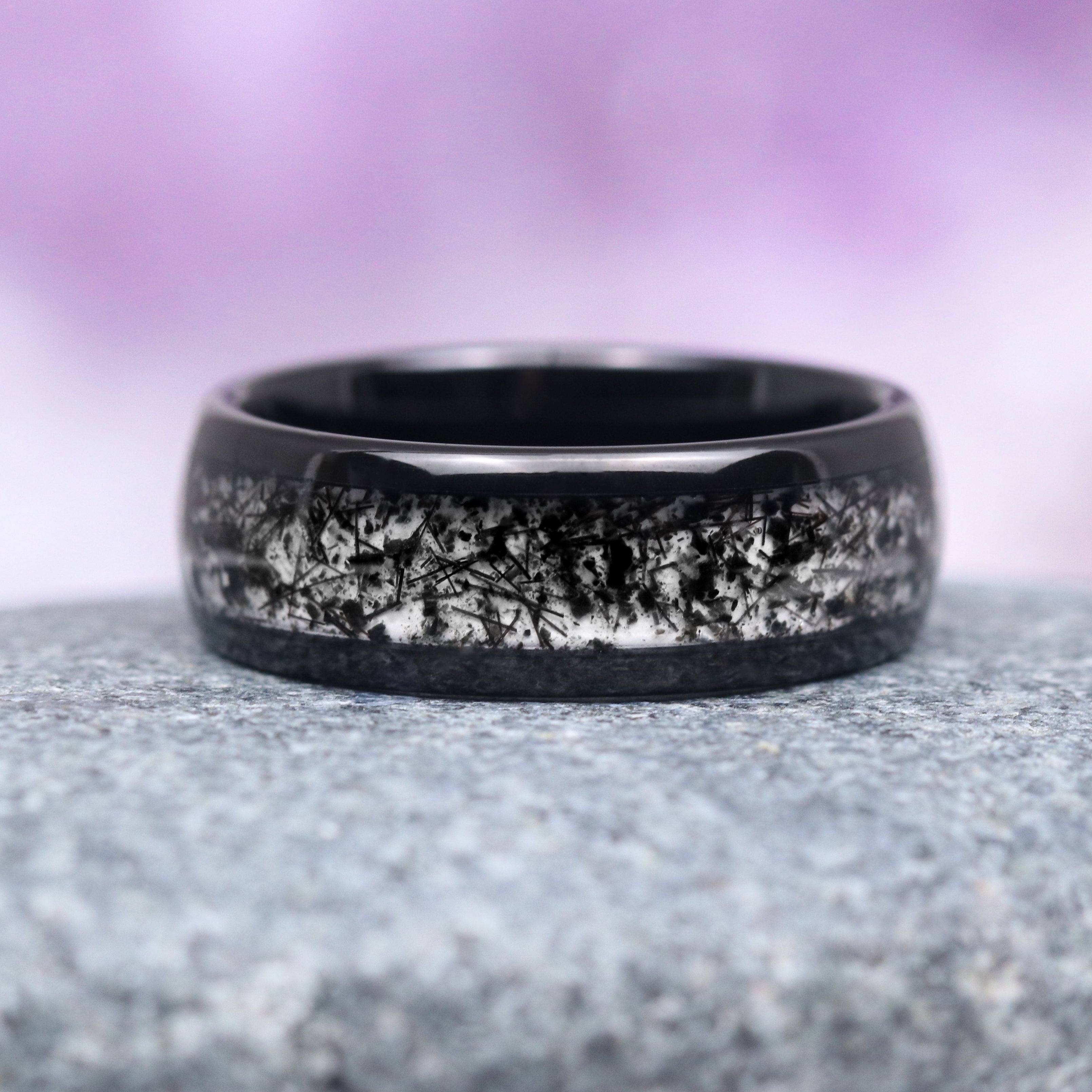 ►Key features: Men’s/Women's Wedding Band, Black Tungsten Carbide Ring, Crushed Quartz Inlay, 8mm Comfort Fit Ring, Polished Dome