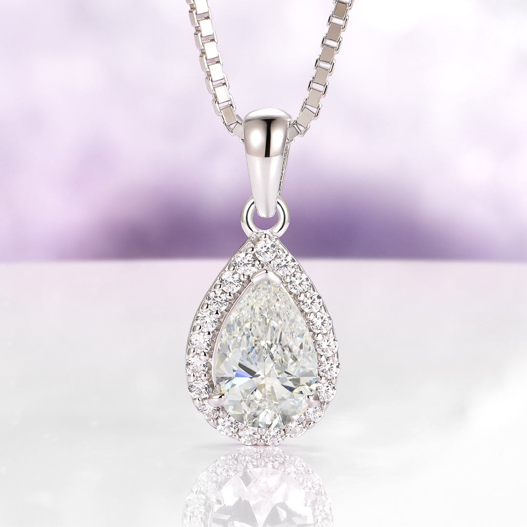 Vera Teardrop White Sapphire Necklace in Sterling Silver