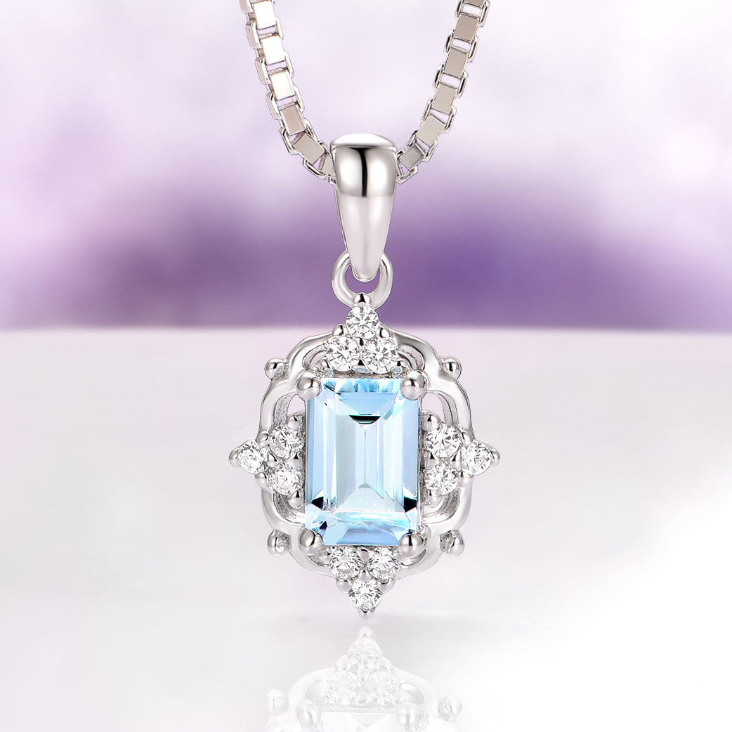 Vintage Natural Aquamarine Necklace in Sterling Silver