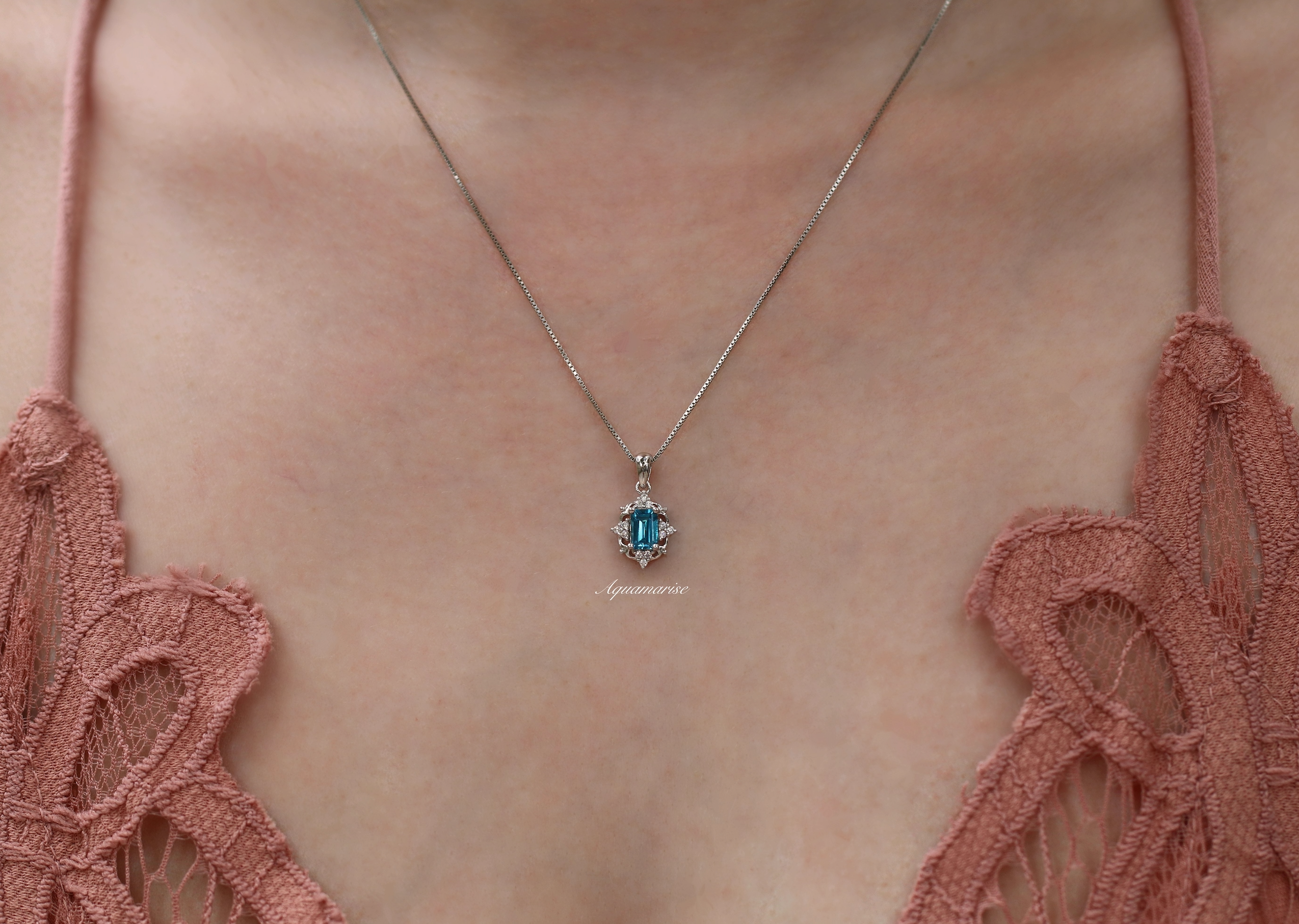 Elevate your everyday look with this timeless vintage-inspired necklace, handcrafted in solid 925 sterling silver and featuring a genuine London blue topaz center stone. The rich, deep blue hue of the emerald-cut gemstone adds an elegant pop of color to any outfit, whether worn alone or layered.