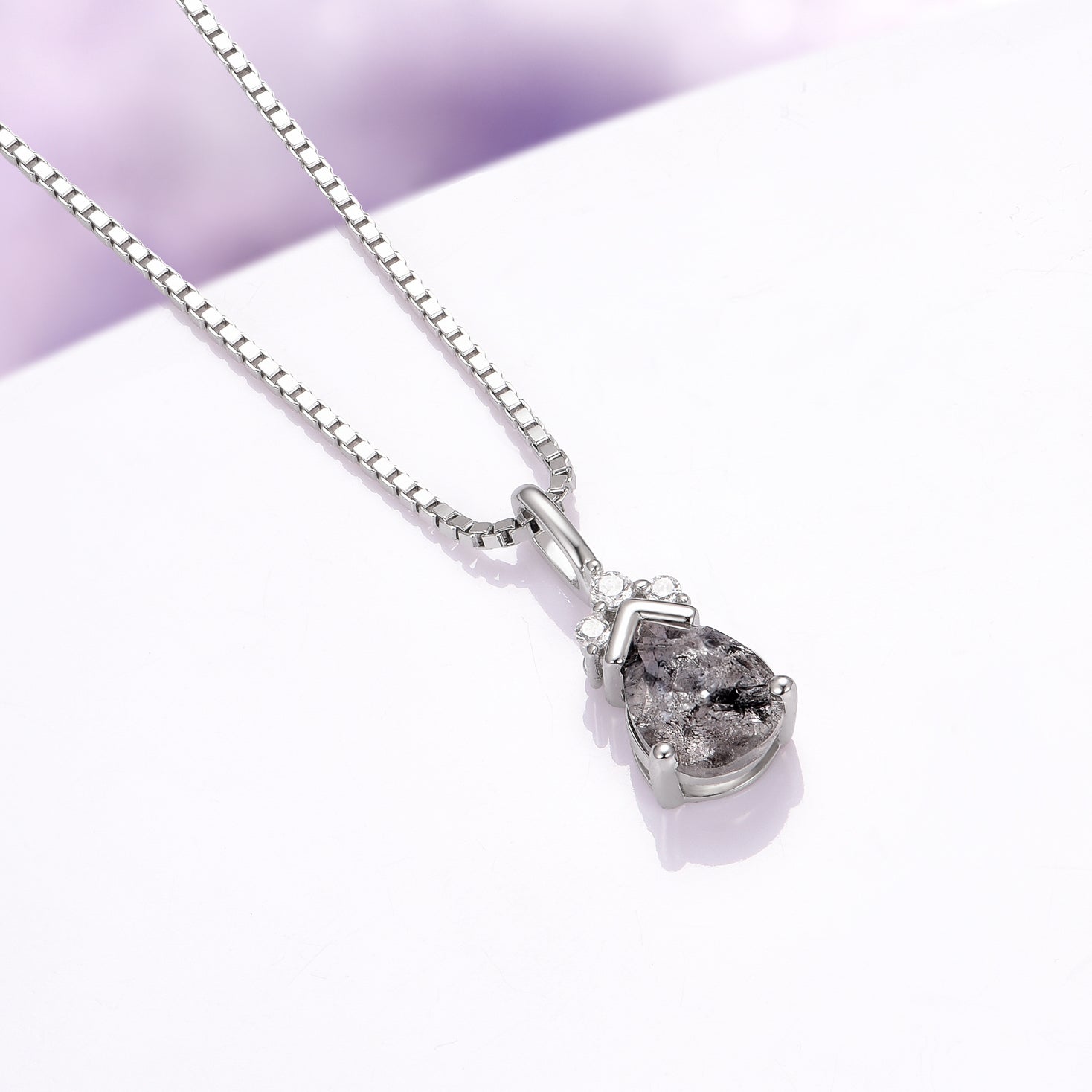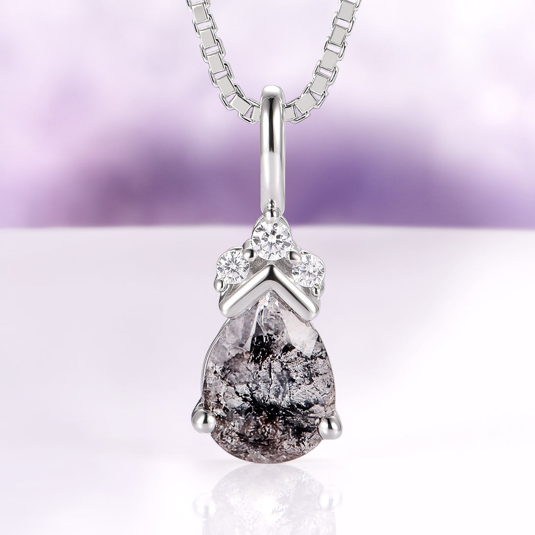 Galaxy Raw Herkimer Diamond Pendant Necklace in Sterling Silver (Salt & Pepper Diamond)