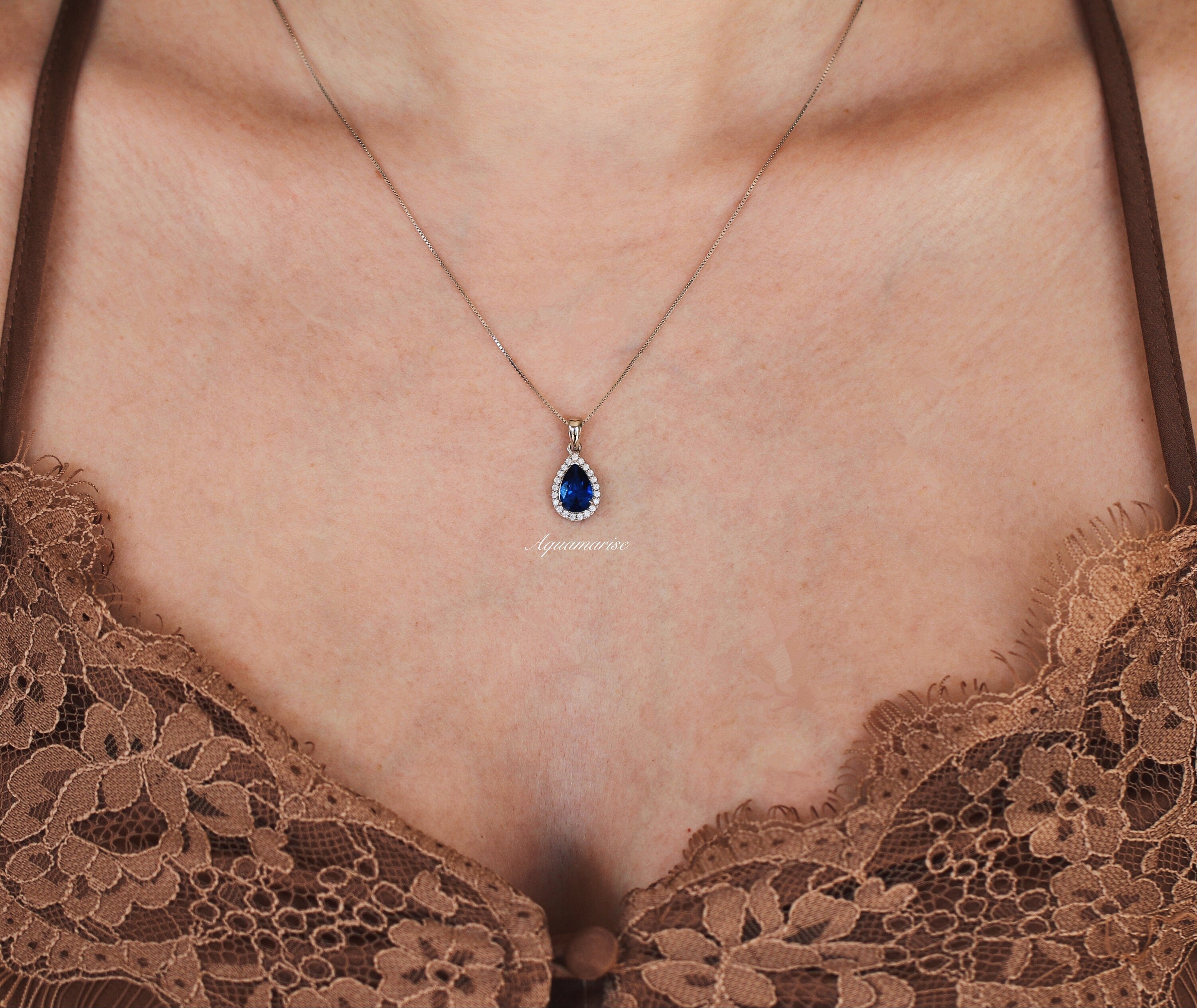 Vera Teardrop Sapphire Necklace in Sterling Silver