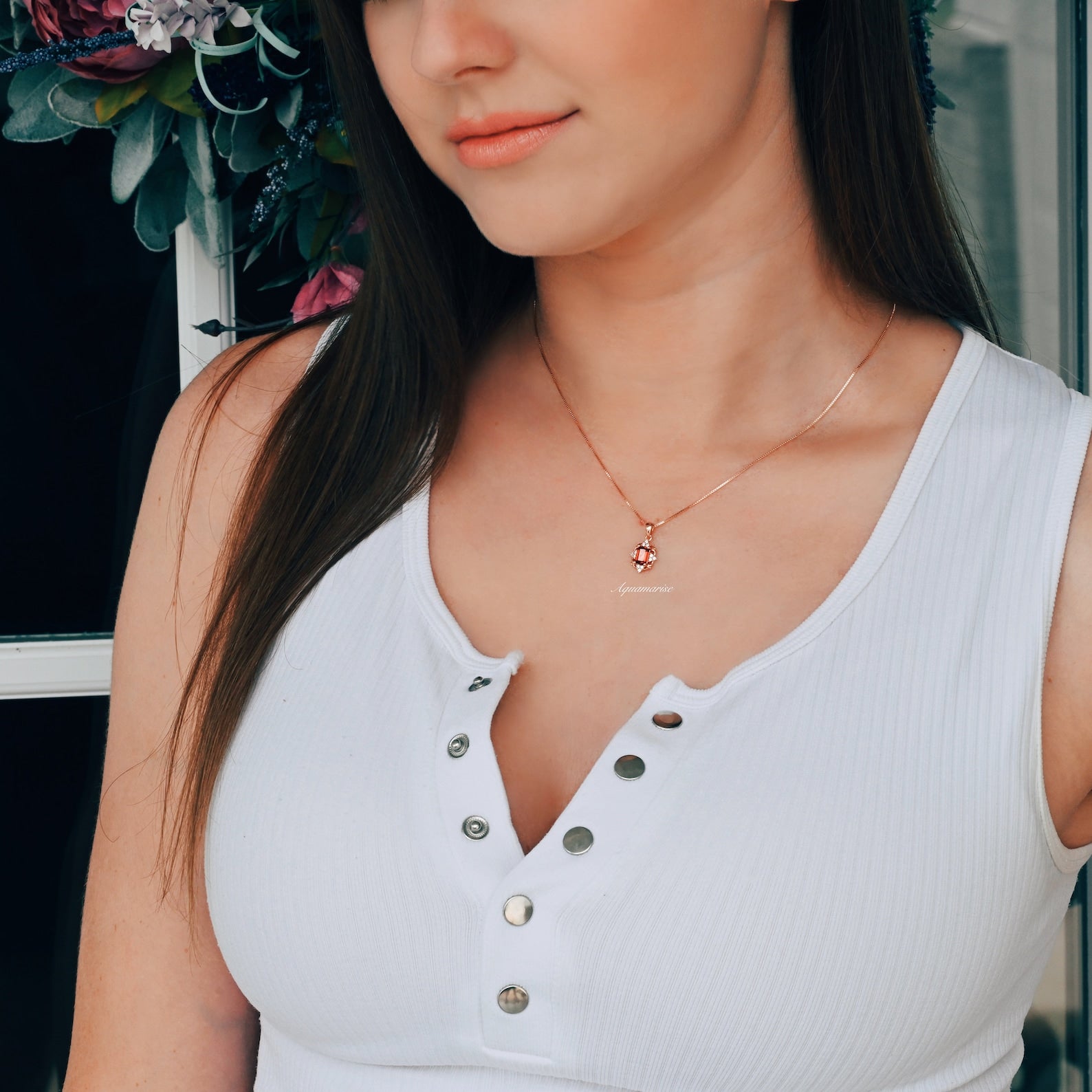 Vintage Natural Red Garnet Necklace in 14K Rose Gold Vermeil