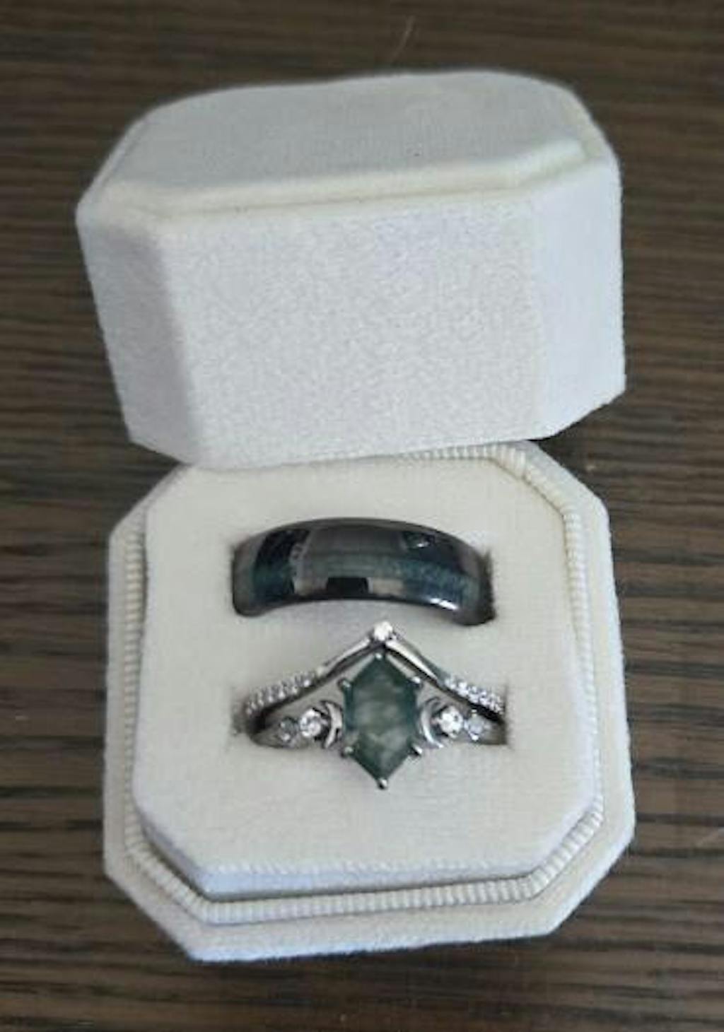 Moss Agate Couples Ring Set – Gothic Nature-Inspired Wedding Bands