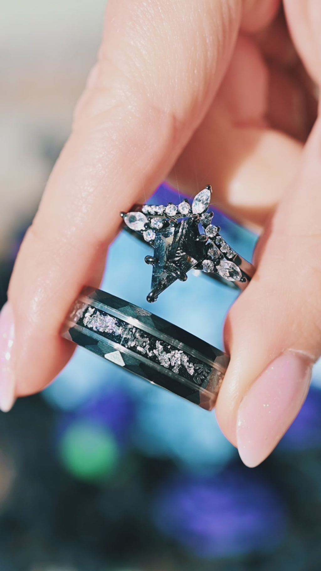 ► Her Ring Material: 925 solid sterling silver with black ruthenium finish