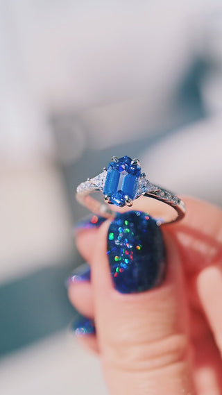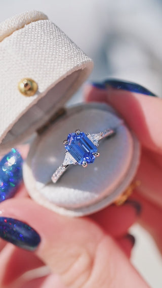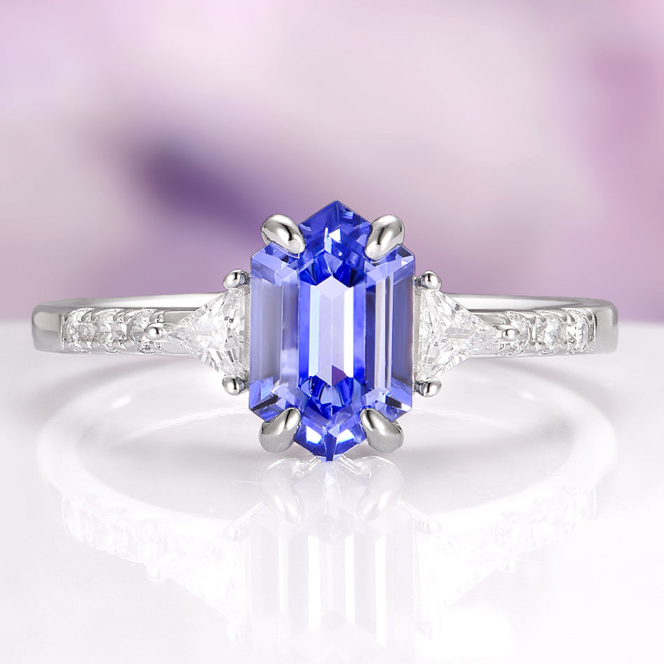 Violet Hexagon Lab Sapphire Ring in Sterling Silver