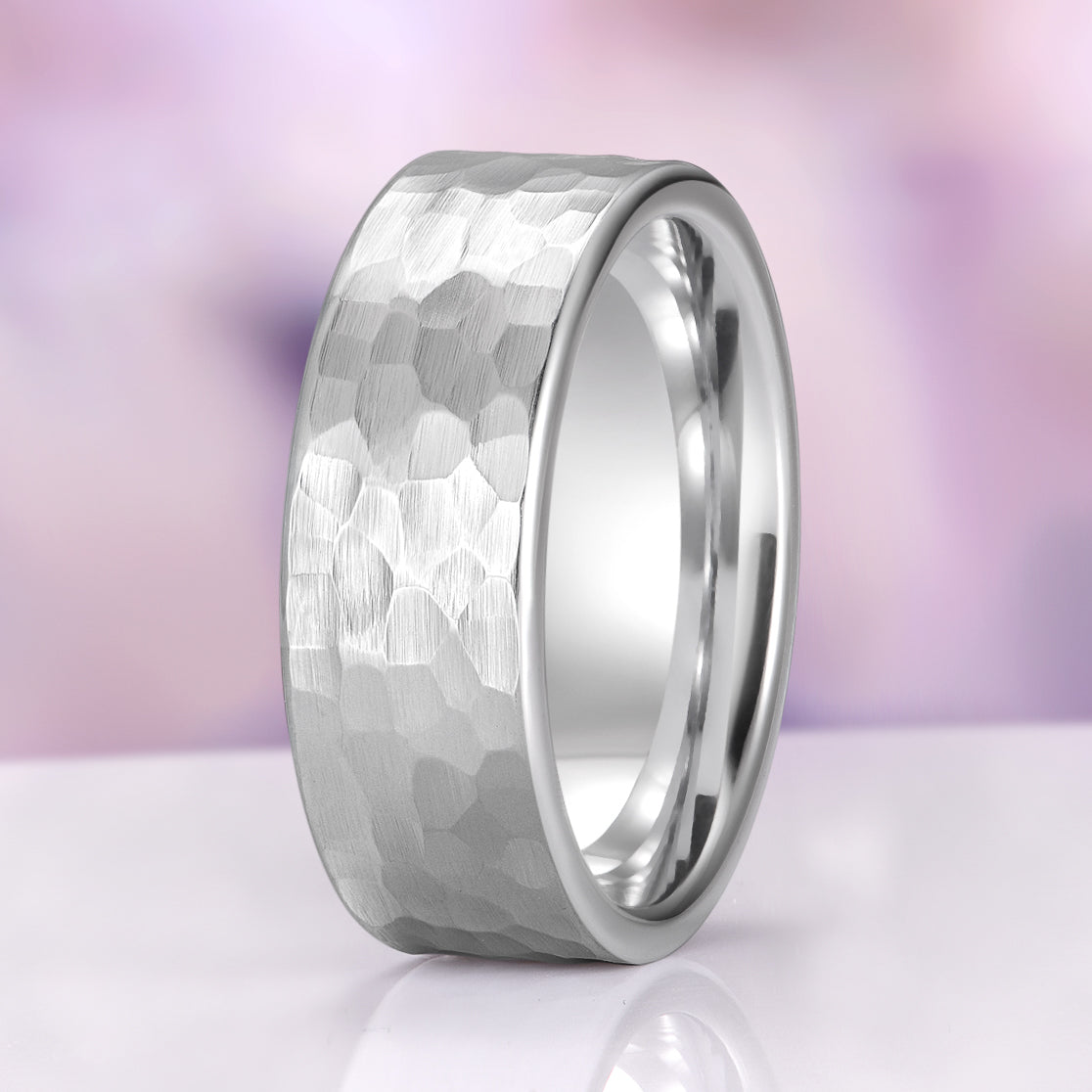 Hammered Wedding Band in Tungsten Carbide (8mm)