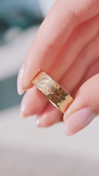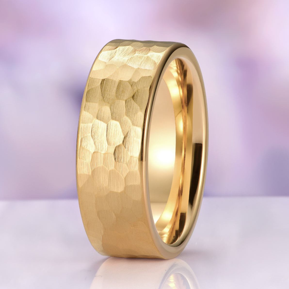 Hammered Wedding Band in Yellow Gold Tungsten Carbide (8mm)