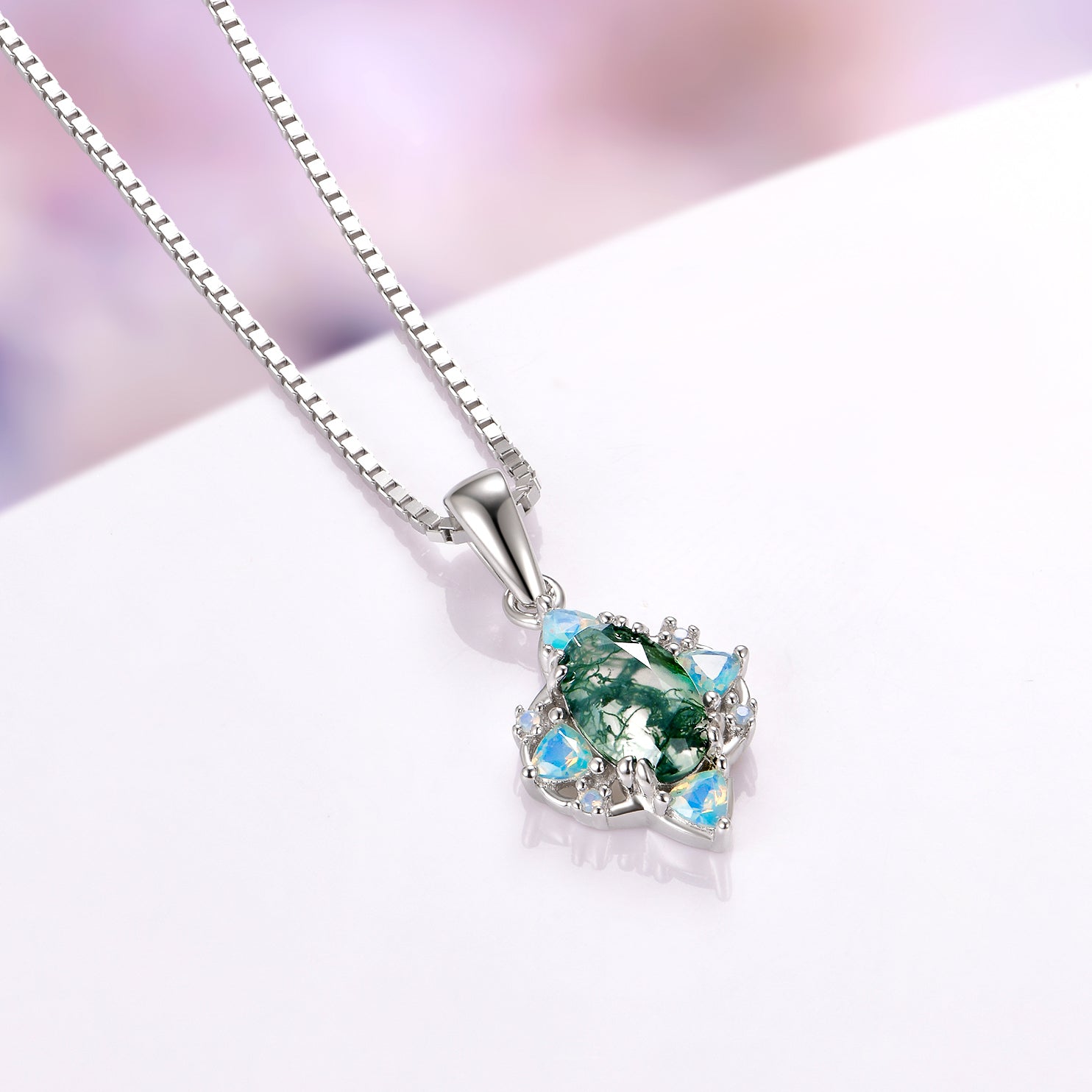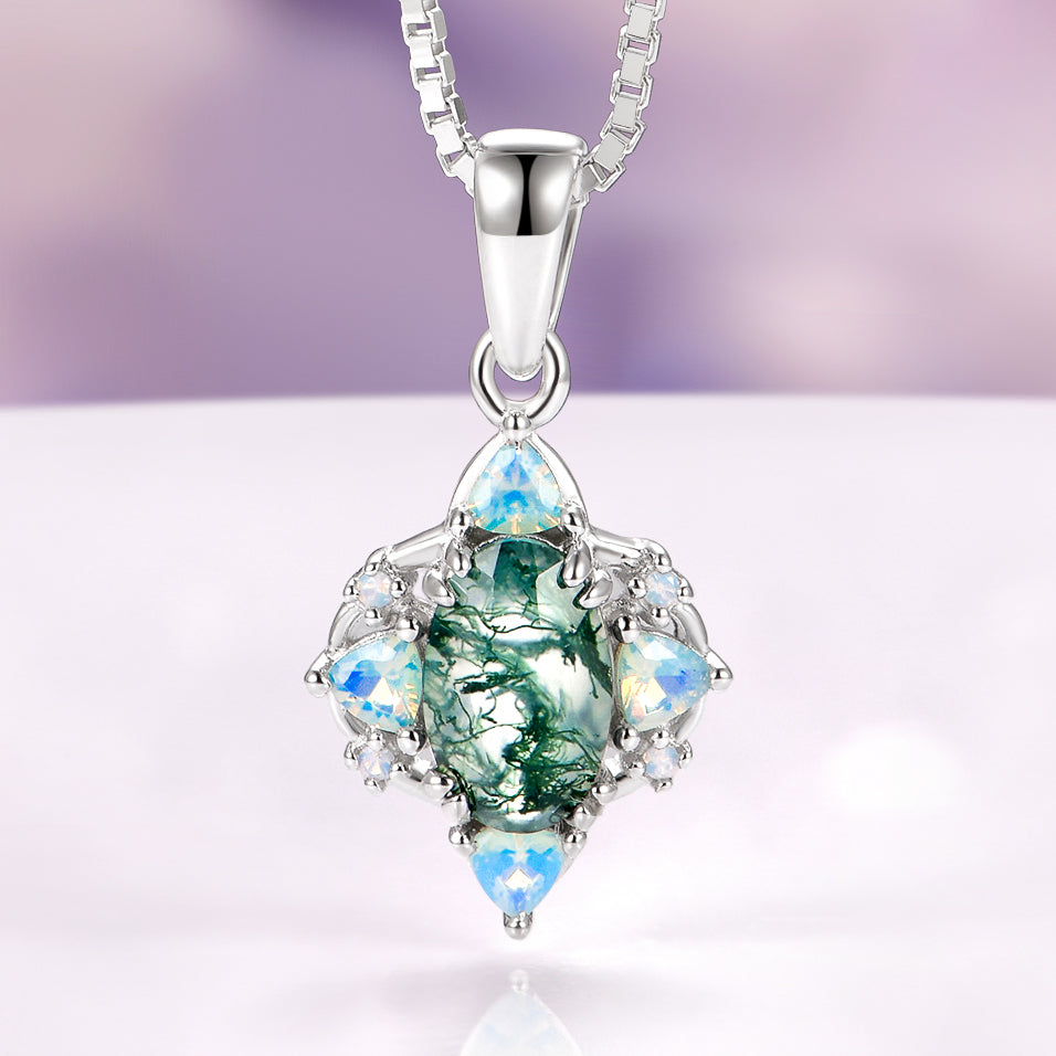 Esme Green Moss Agate & Opalescent Sapphire Necklace in Sterling Silver