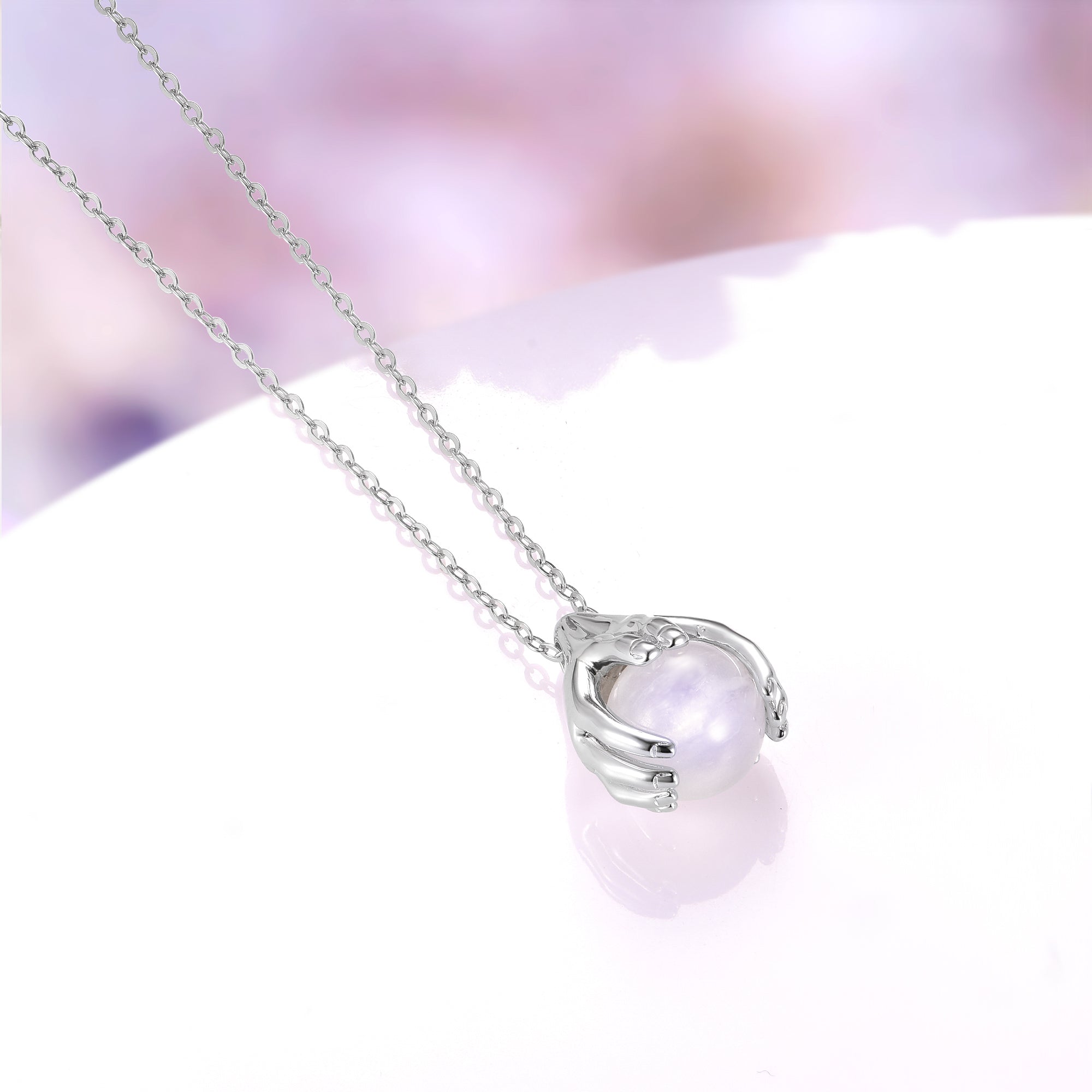 Ethereal Hold Moonstone Necklace in Sterling Silver