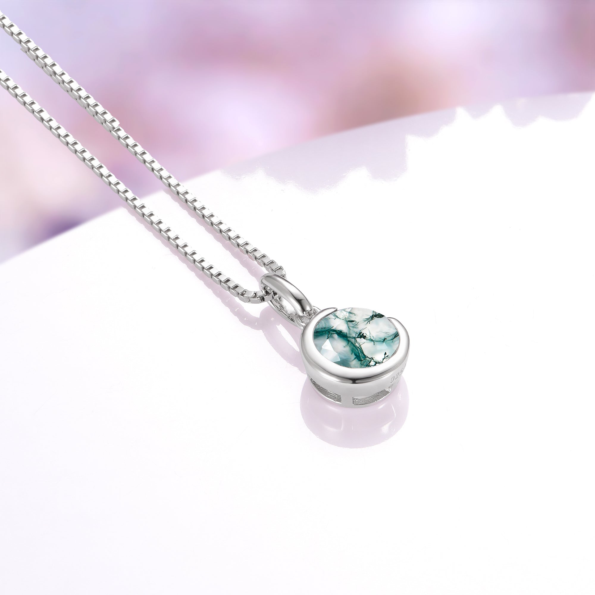 Moss Agate Crescent Moon Necklace in Sterling Silver