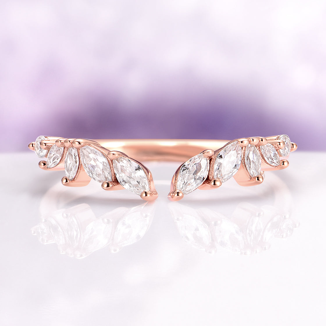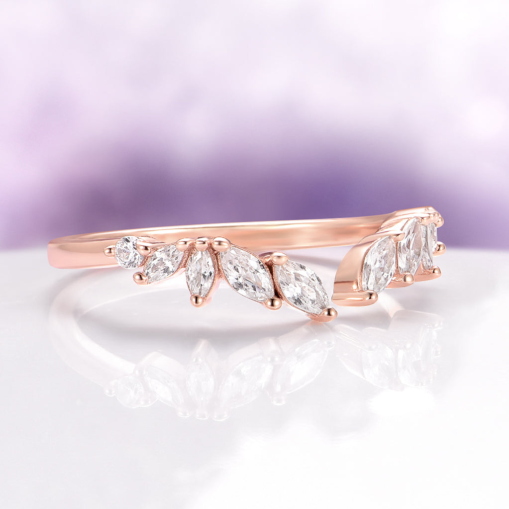 Curved Marquise Wedding Band in Solid 14K Rose Gold