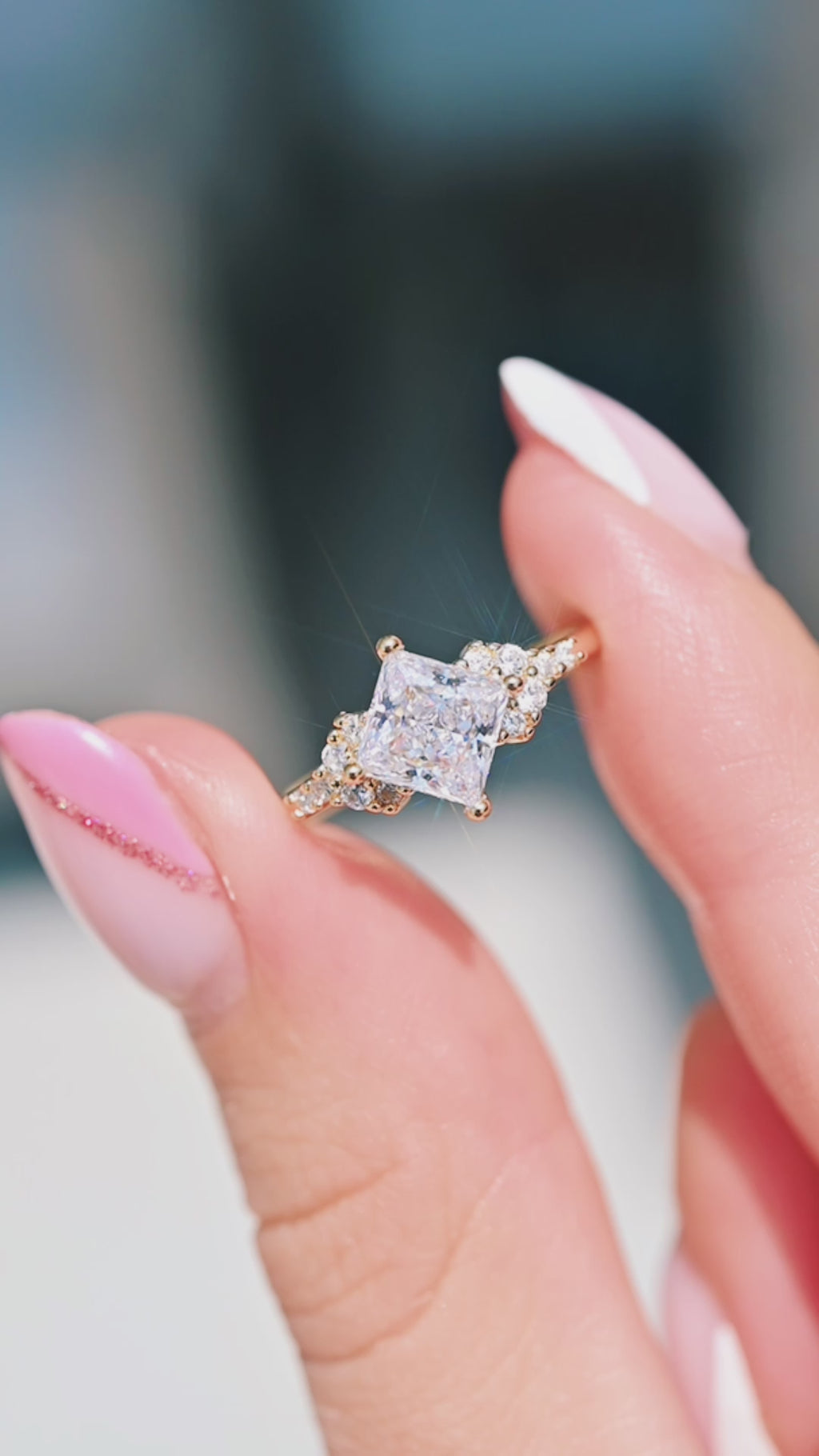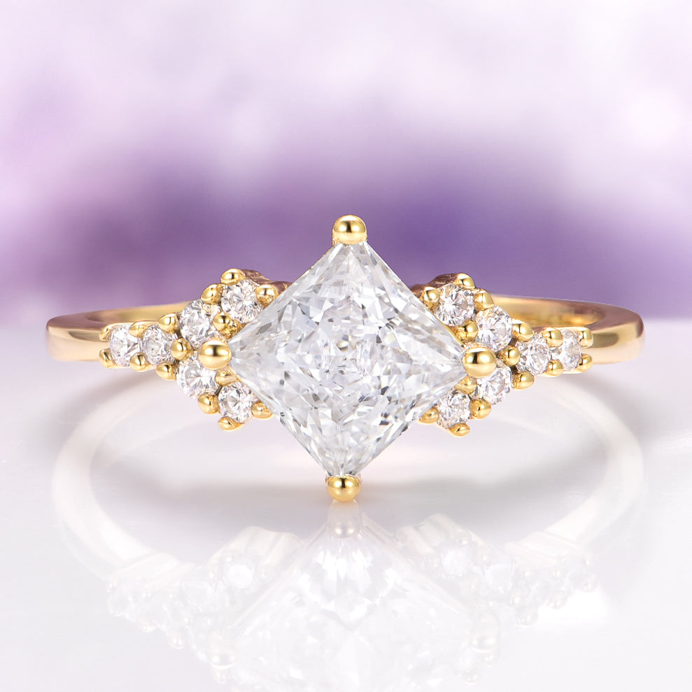 Introducing the Ellie Princess Cut Lab-Grown Diamond Engagement Ring, a delicate and timeless design that radiates brilliance and modern romance. Handcrafted in solid 14K yellow gold, this elegant piece features a princess-cut lab-grown diamond, admired for its exceptional sparkle and purity that symbolize everlasting love and harmony. The refined setting is complemented by additional lab-grown diamond accents, enhancing its luminous beauty. Lightweight yet sophisticated, the Ellie is a graceful statement of enduring elegance, designed to be cherished for a lifetime.