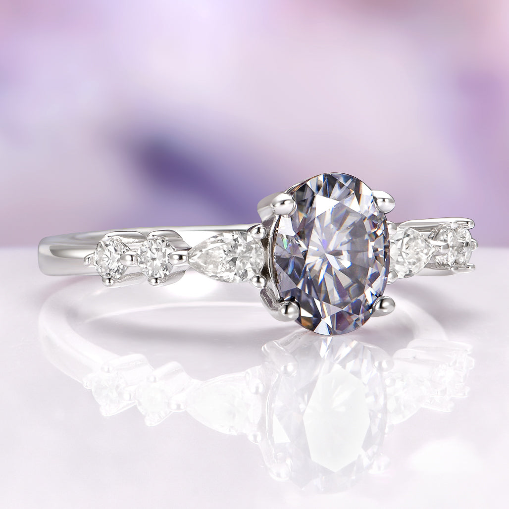 Oval Cut Gray Moissanite Engagement Ring in 14K White Gold