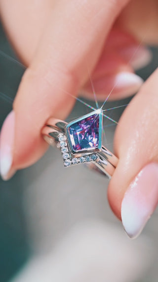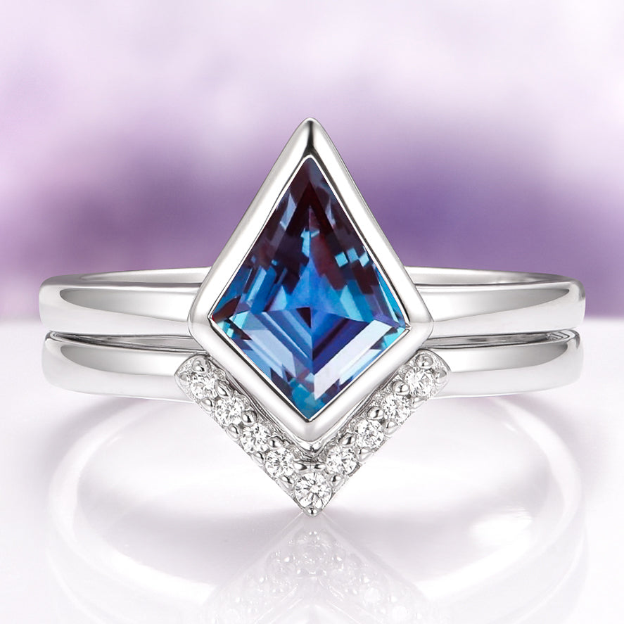 Kite Cut Alexandrite Bezel Engagement Ring Set in Sterling Silver