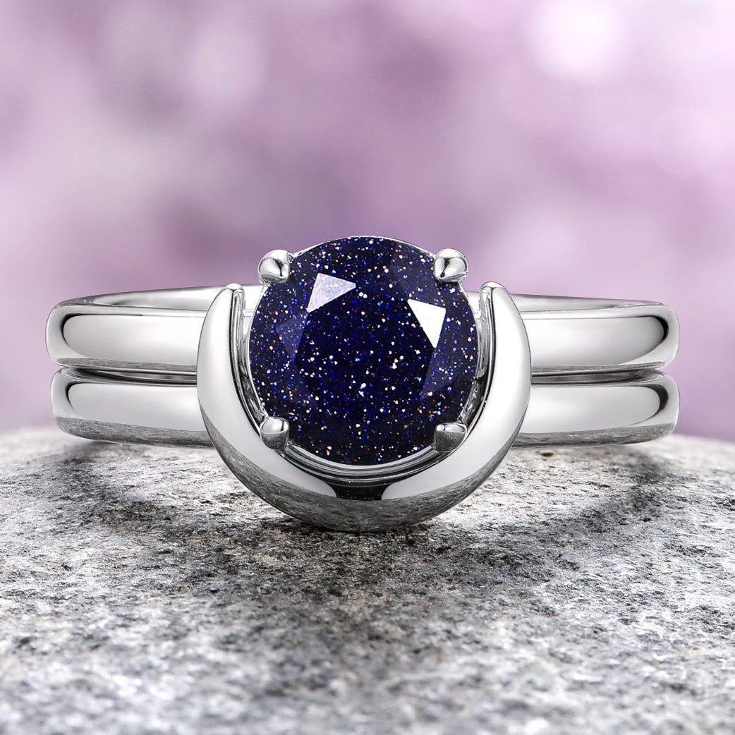►Please note that blue sandstone is a softer gemstone compared to diamonds and requires delicate care. If durability is a concern, we offer the option to substitute the center stone with a blue sapphire at no additional cost. Simply leave a note at checkout if you prefer the sapphire option.