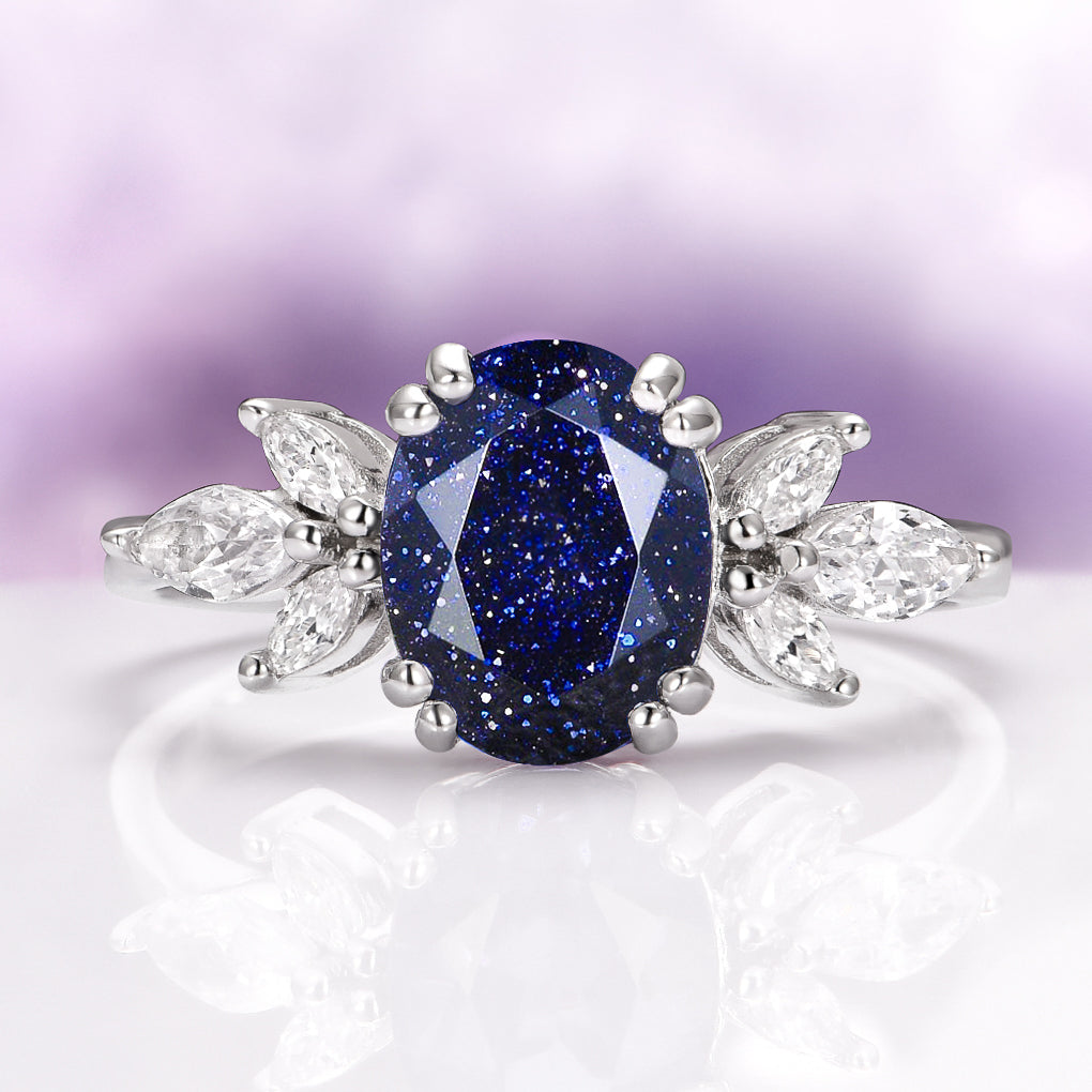 Eva Starry Night (Sandstone) Engagement Ring in 14K White Gold