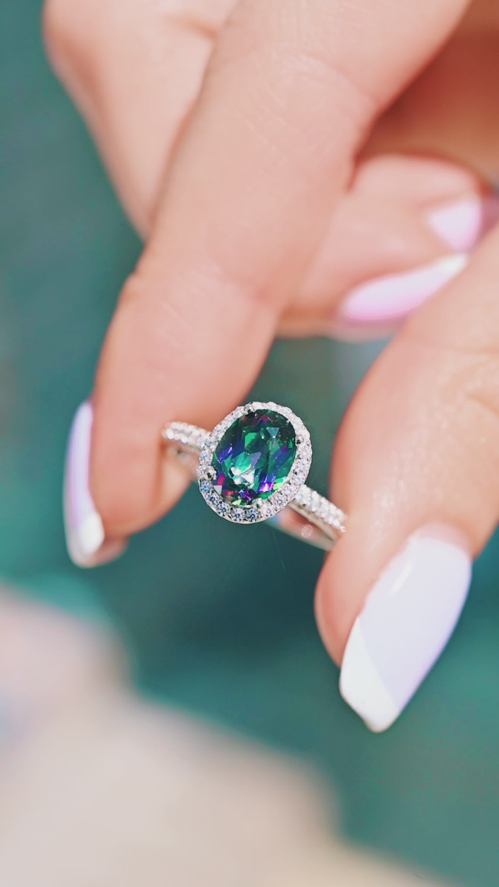 Enchanting Oval Halo Mystic Topaz Ring – Sterling Silver Engagement Ring or Statement Ring