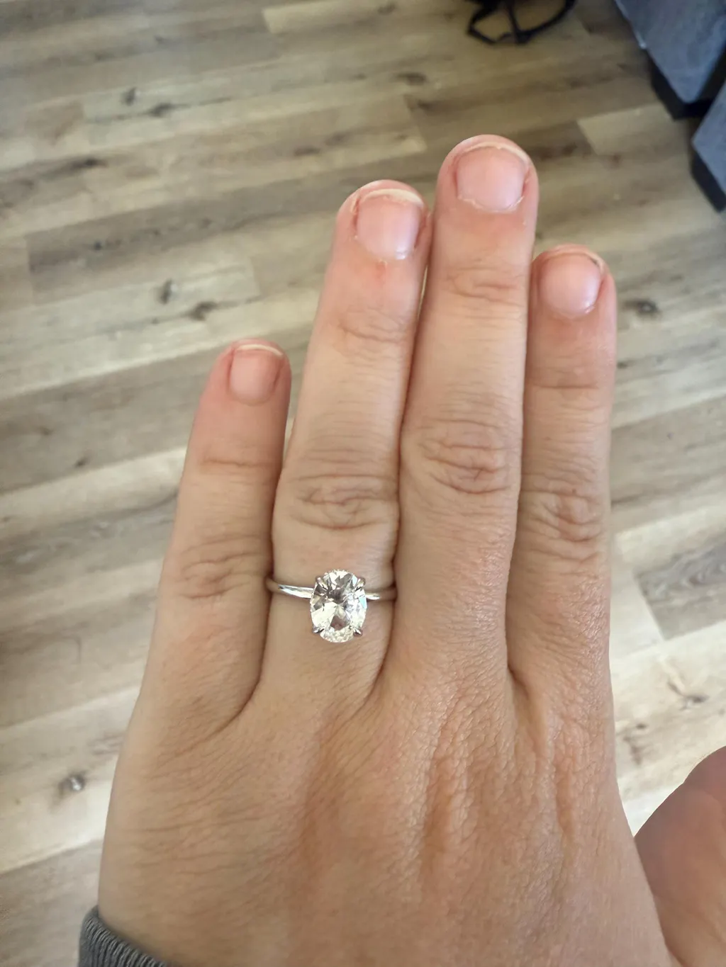 This Oval Solitaire Ring with Hidden Halo is the definition of refined luxury. Clean lines, thoughtful proportions, and subtle sparkle combine to create a ring that feels timeless, elegant, and endlessly wearable. Whether chosen in white sapphire or moissanite, this design offers industry-standard craftsmanship with a modern, elevated feel—made to be cherished for years to come.