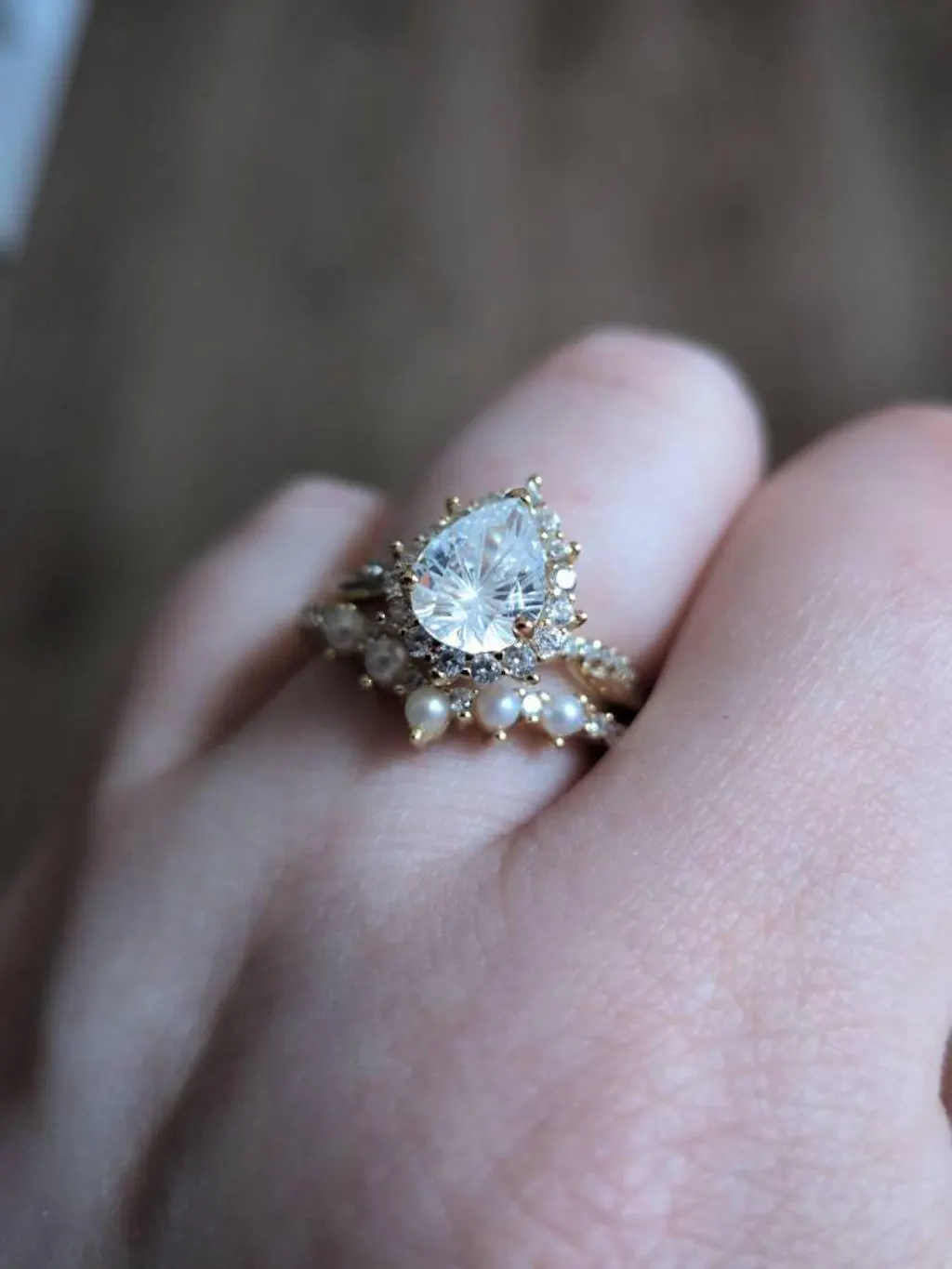 ►Two-ring set: Engagement ring + Pearl enchanter band