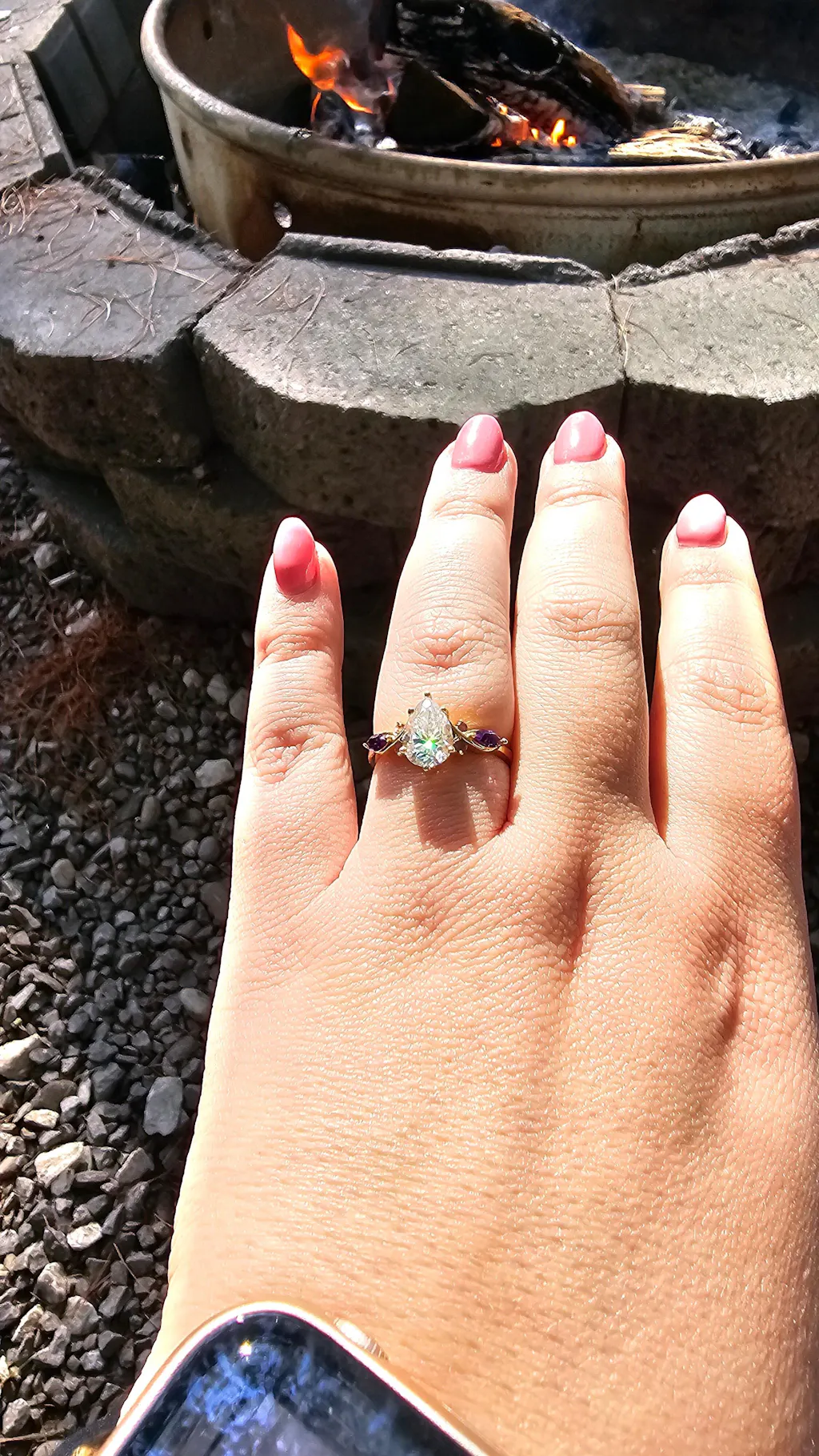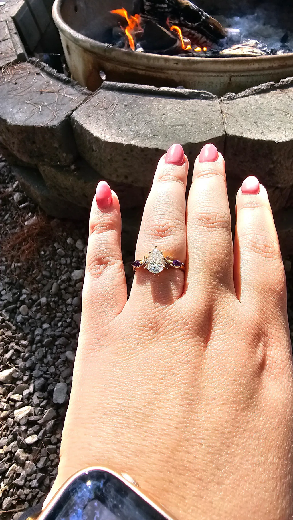 I saw this same ring in white gold but really wanted it in yellow gold. My fiancé did not disappoint! He contacted Aquamarise and asked if they could do this. It is even more beautiful in person. I am absolutely in love with it and couldn’t imagine a more perfect ring to be proposed with. I can’t stop staring at it! I feel extra special knowing it was created just for me and no one else has it (for now ☺️).