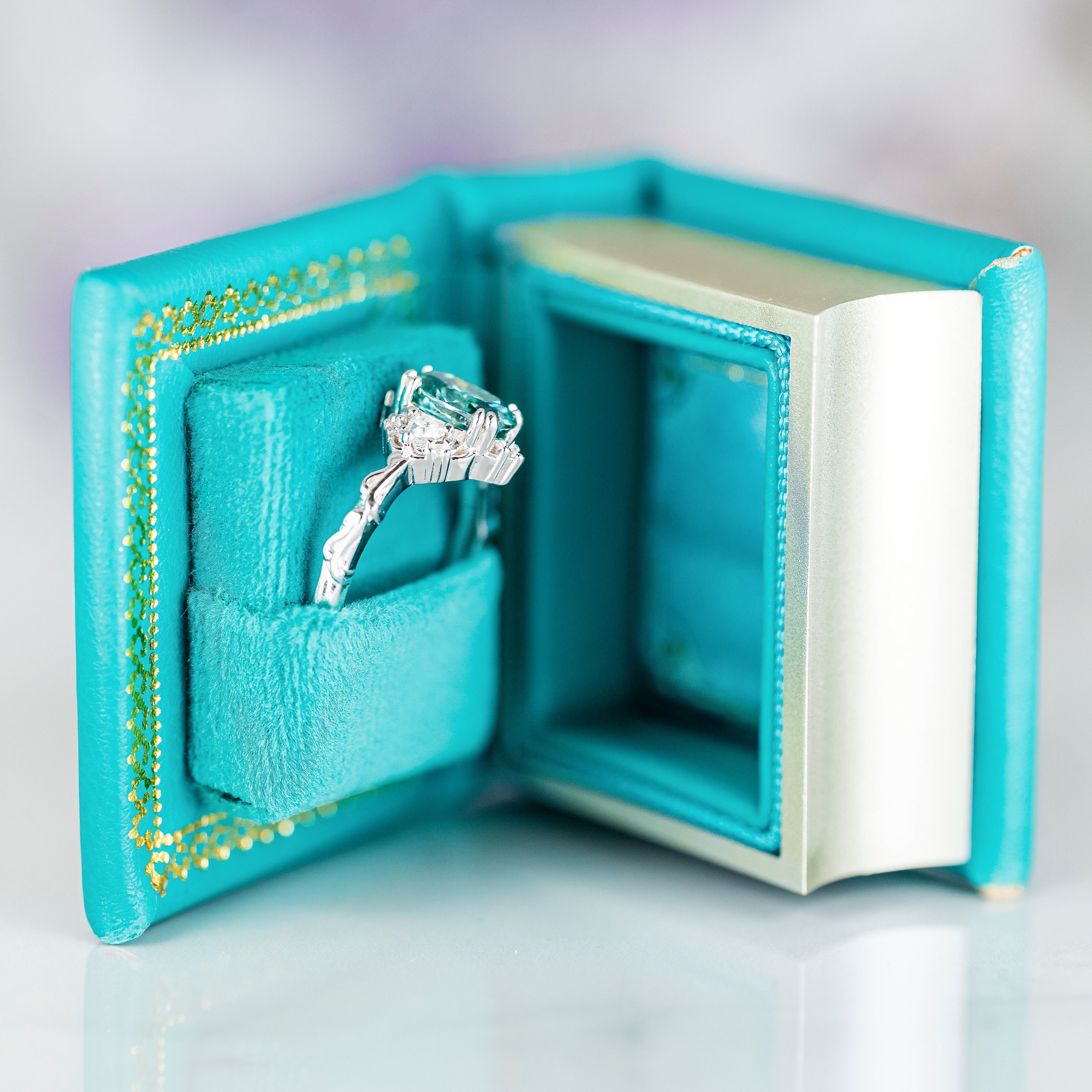 Handcrafted with care and designed exclusively by Aquamarise®, this small yet captivating ring box is perfect for whimsical proposals, fantasy-inspired engagements, or gifts for book lovers. Its compact design fits smaller, daintier rings, while a larger version for more intricate settings will soon join our storybook collection.